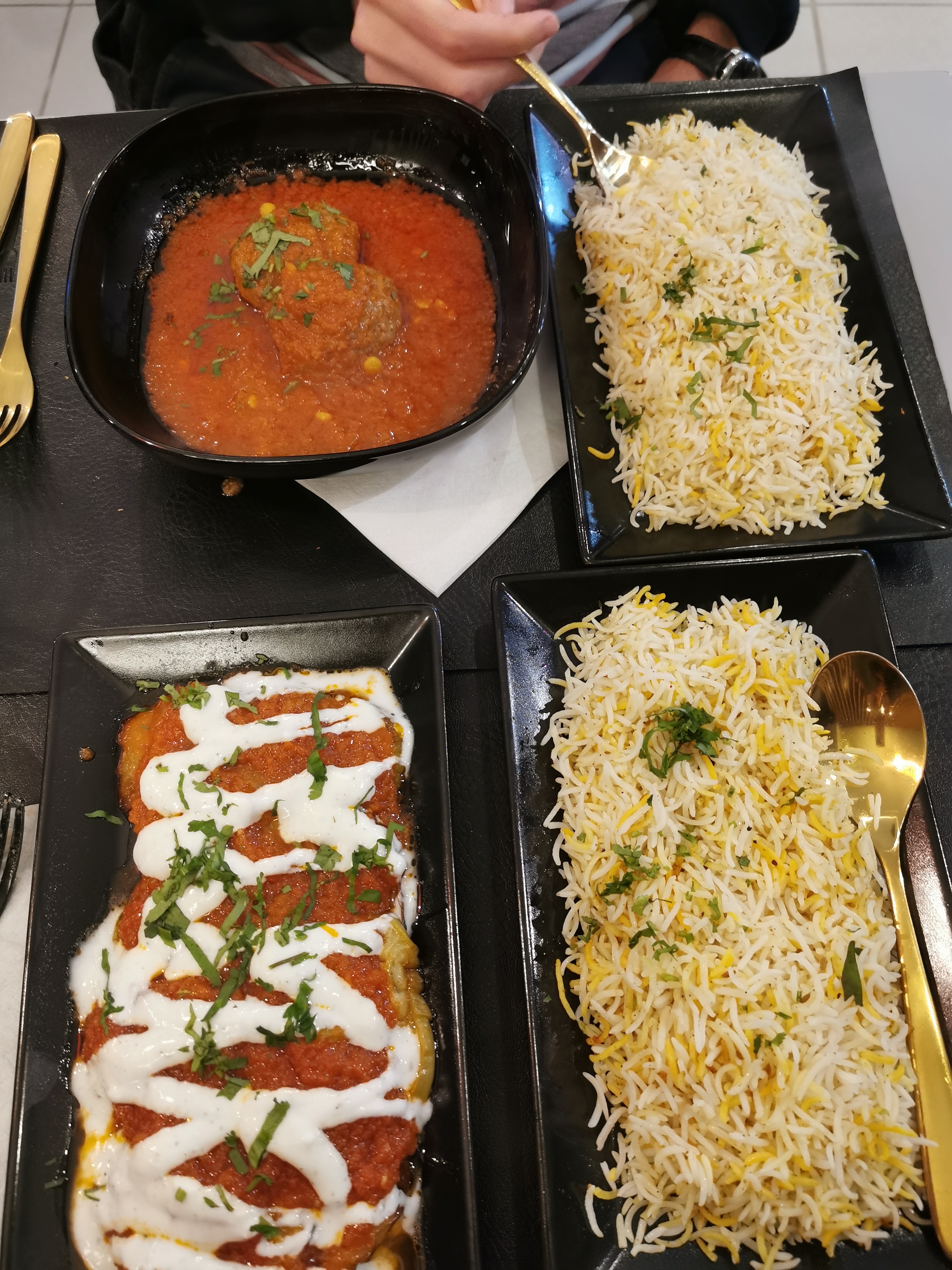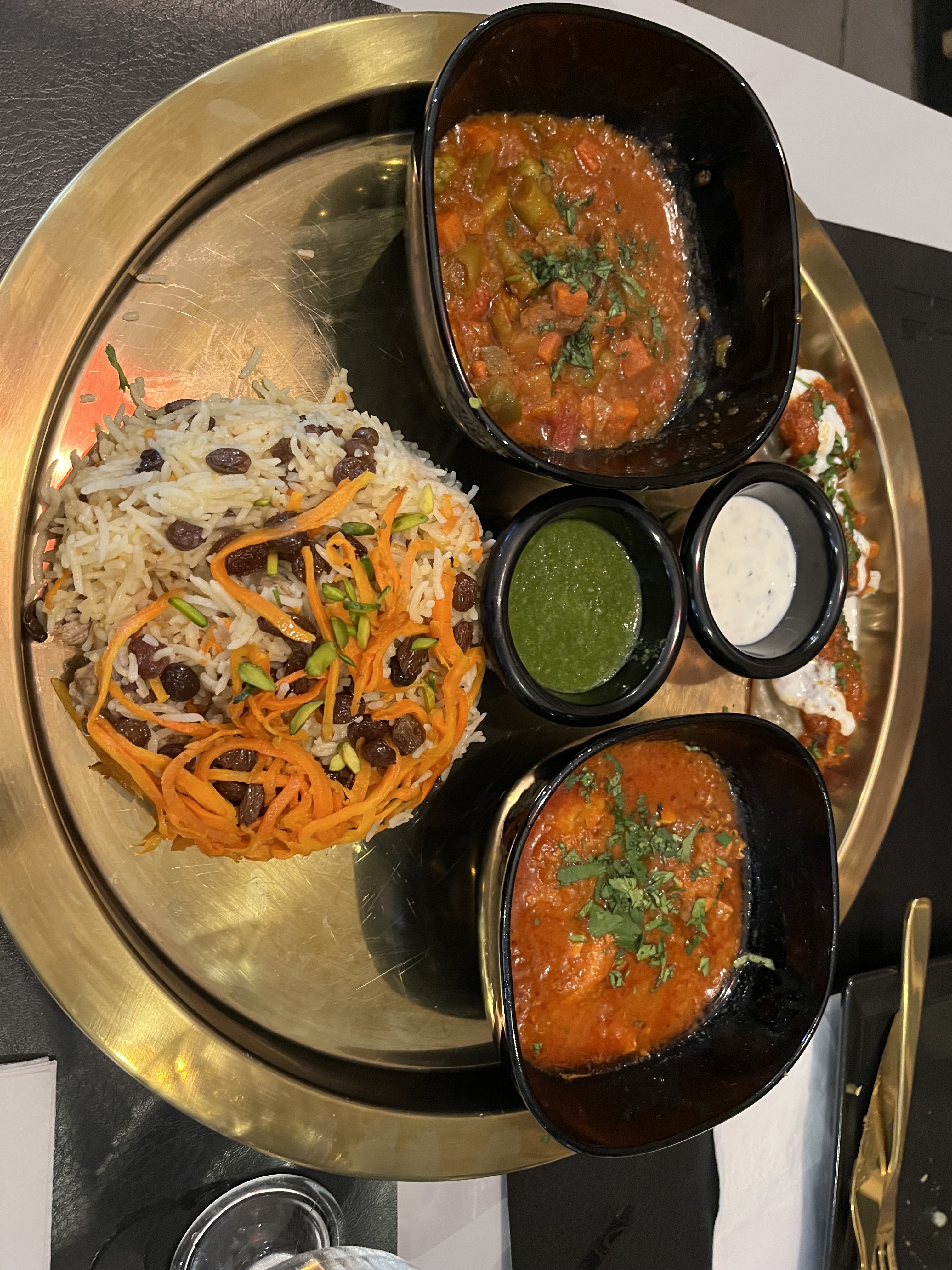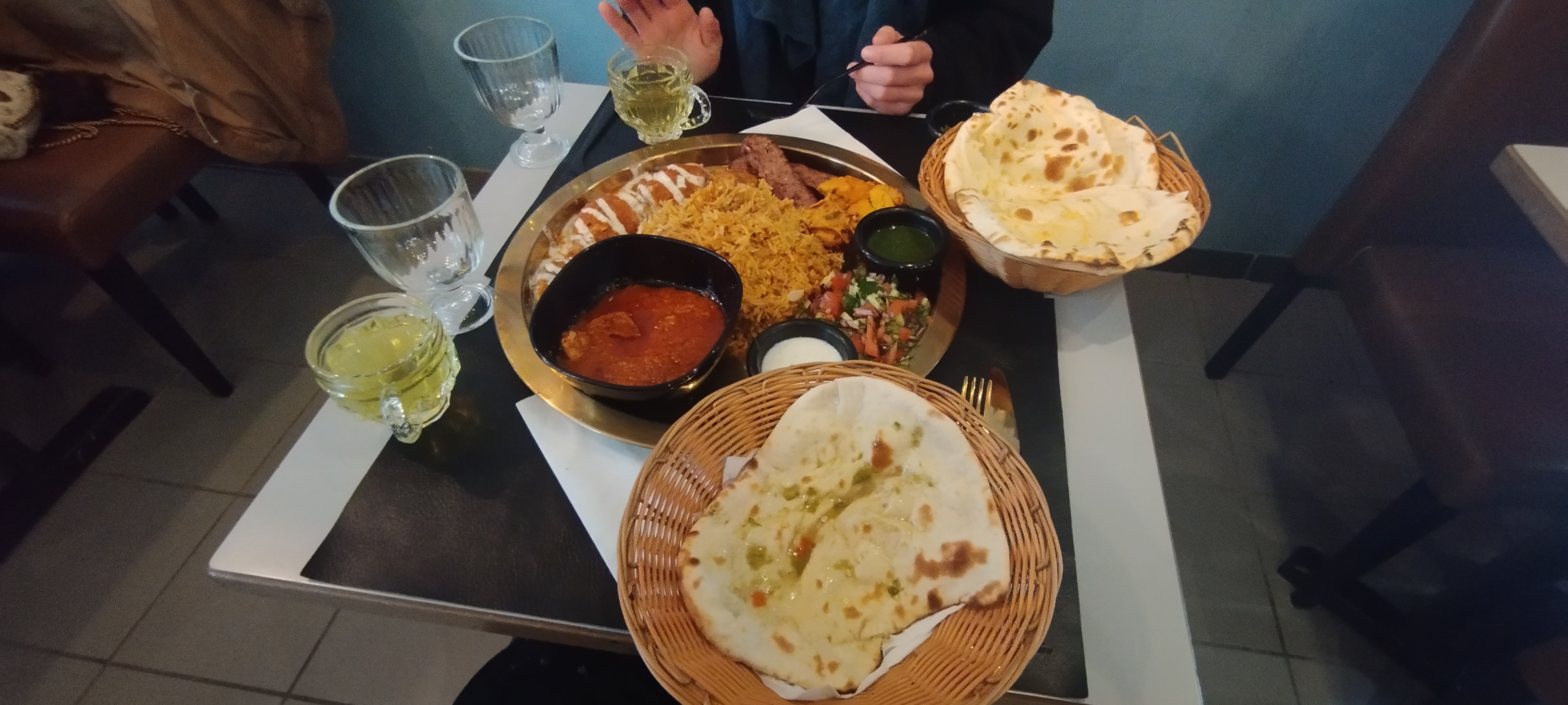 Pour quasiment 50€ pour 2 nous avons eu beaucoup de riz et peu de viande, les cheese naan on se demande encore s'il y avait vraiment du fromage dedans. C'est abusé, je suis très déçue, je n'y mettrai plus les pieds...