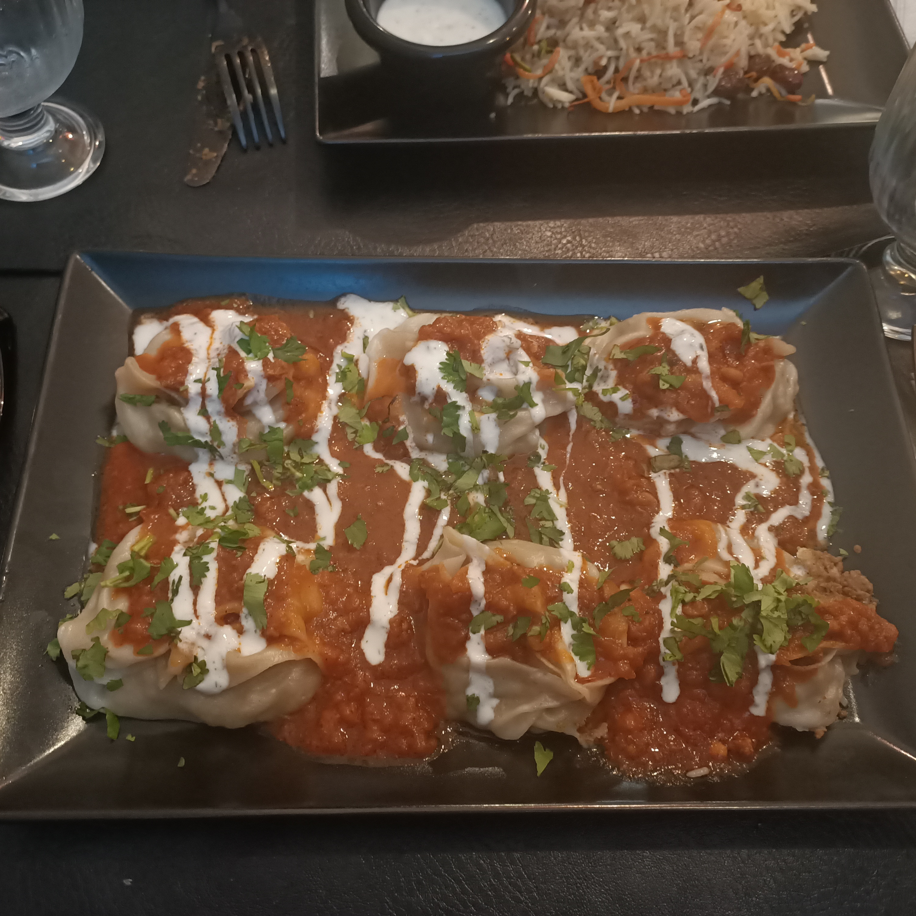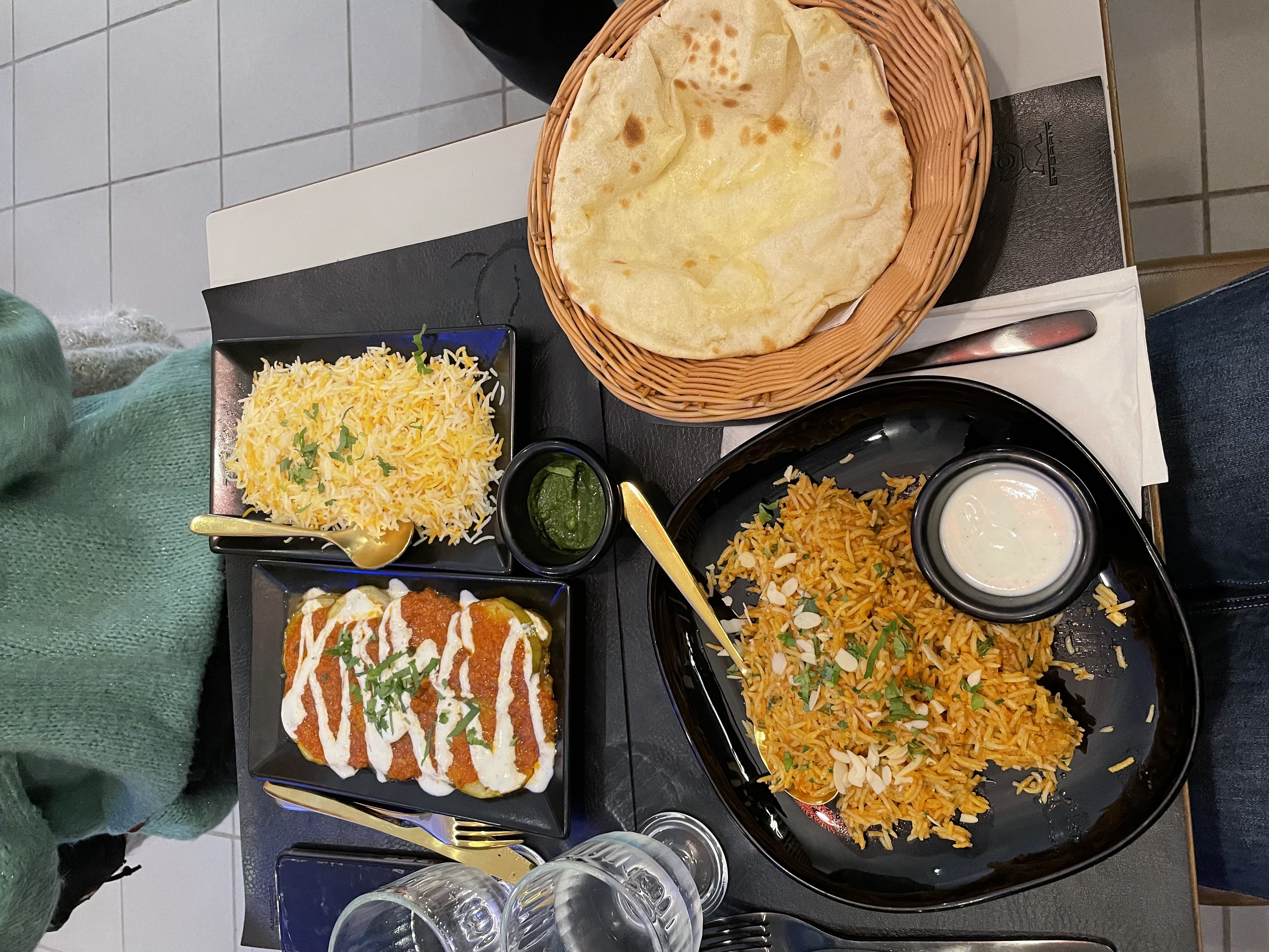 Excellent Kabouli Palao, accompagné d'un naan au fromage et d'un thé vert à la cardamome. La prochaine fois, je goûte les mantous. 🖤❤️💚