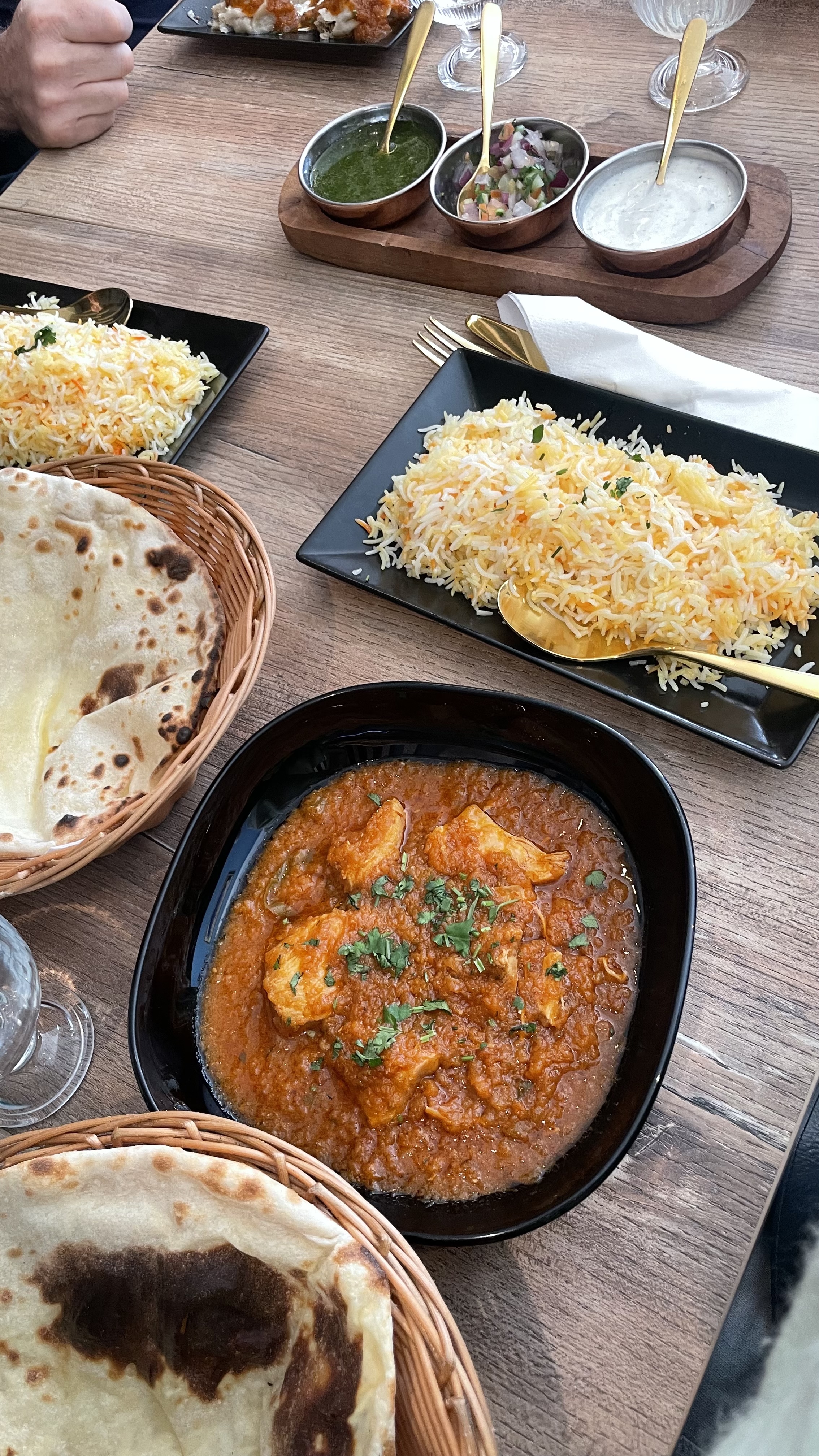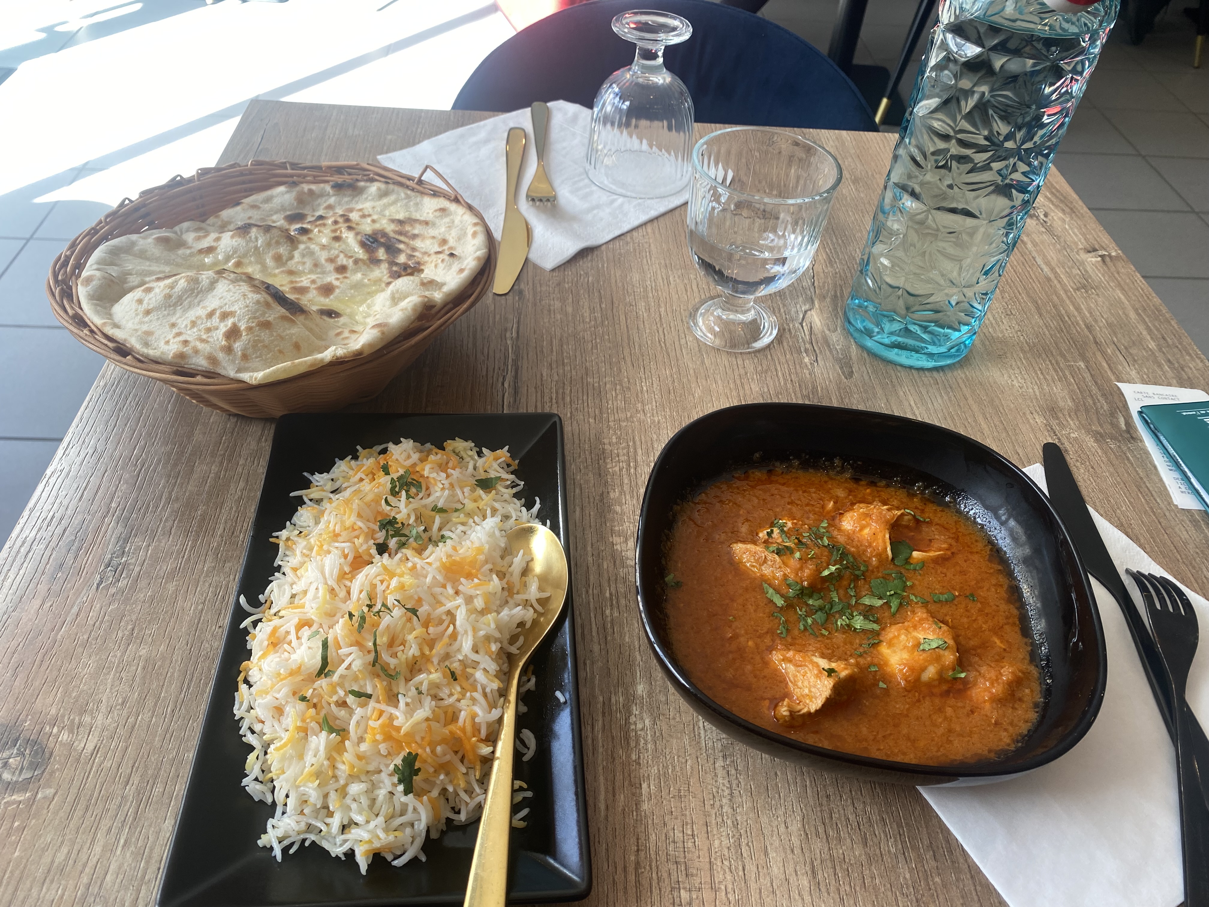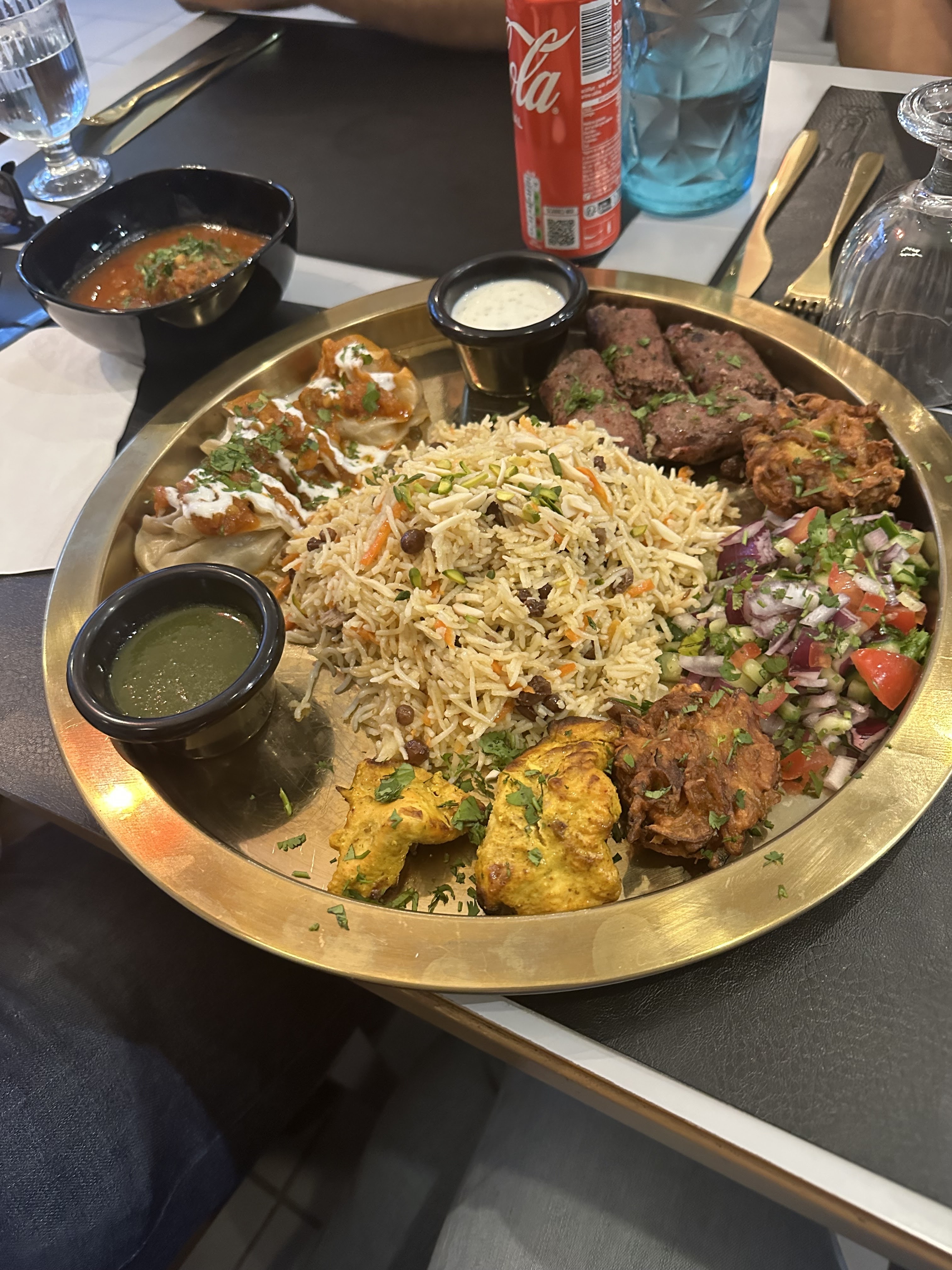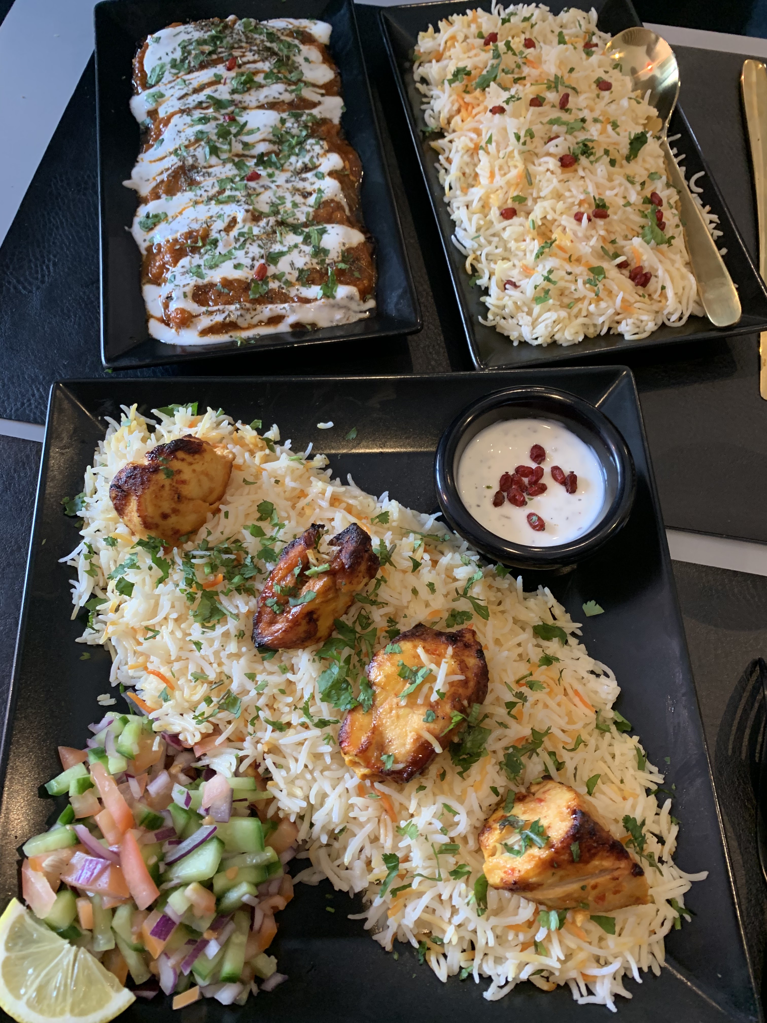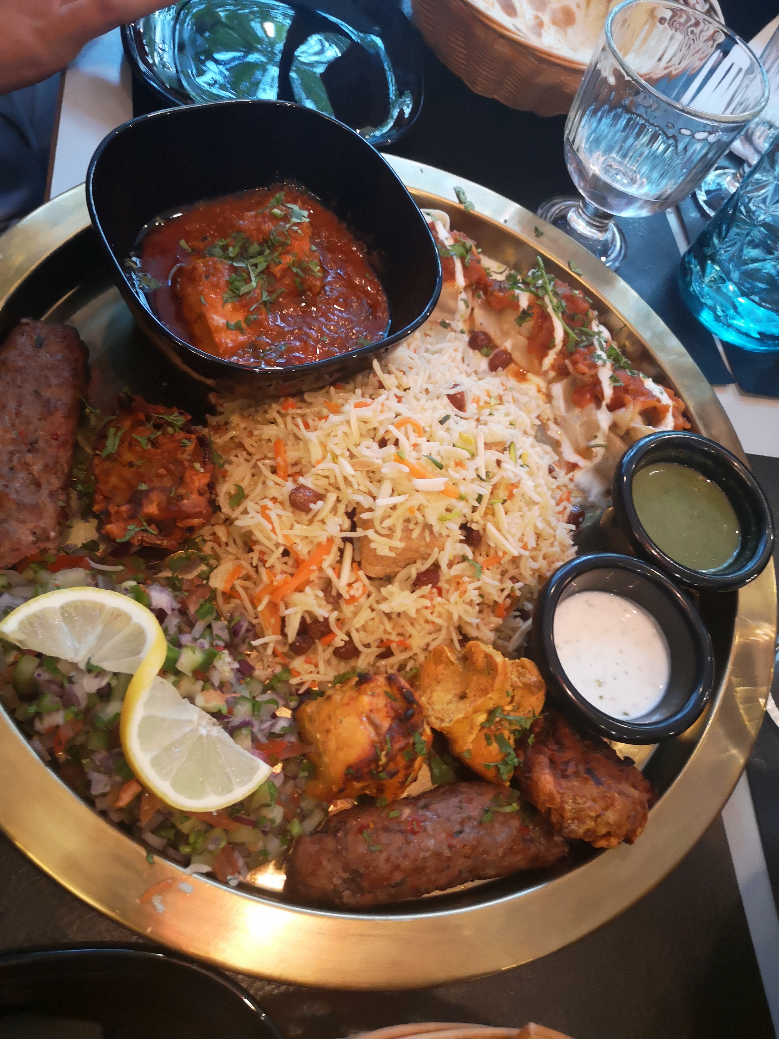 C'était très bon , les plat ,le service et l'accueil . On étaient 6 adults avec un enfant sans reservation on a commandé 3 plats principals et 3 entrées , le riz est cuit parfaitement les épices sont très bon .. les Nan nature et au fromage sont délicieux 👌rien a dire Une critique négative est la quantité de viande dans le plat est très faible par rapport au riz , je me rappelle plus le nom de plat,mais la poulet biriani était bien