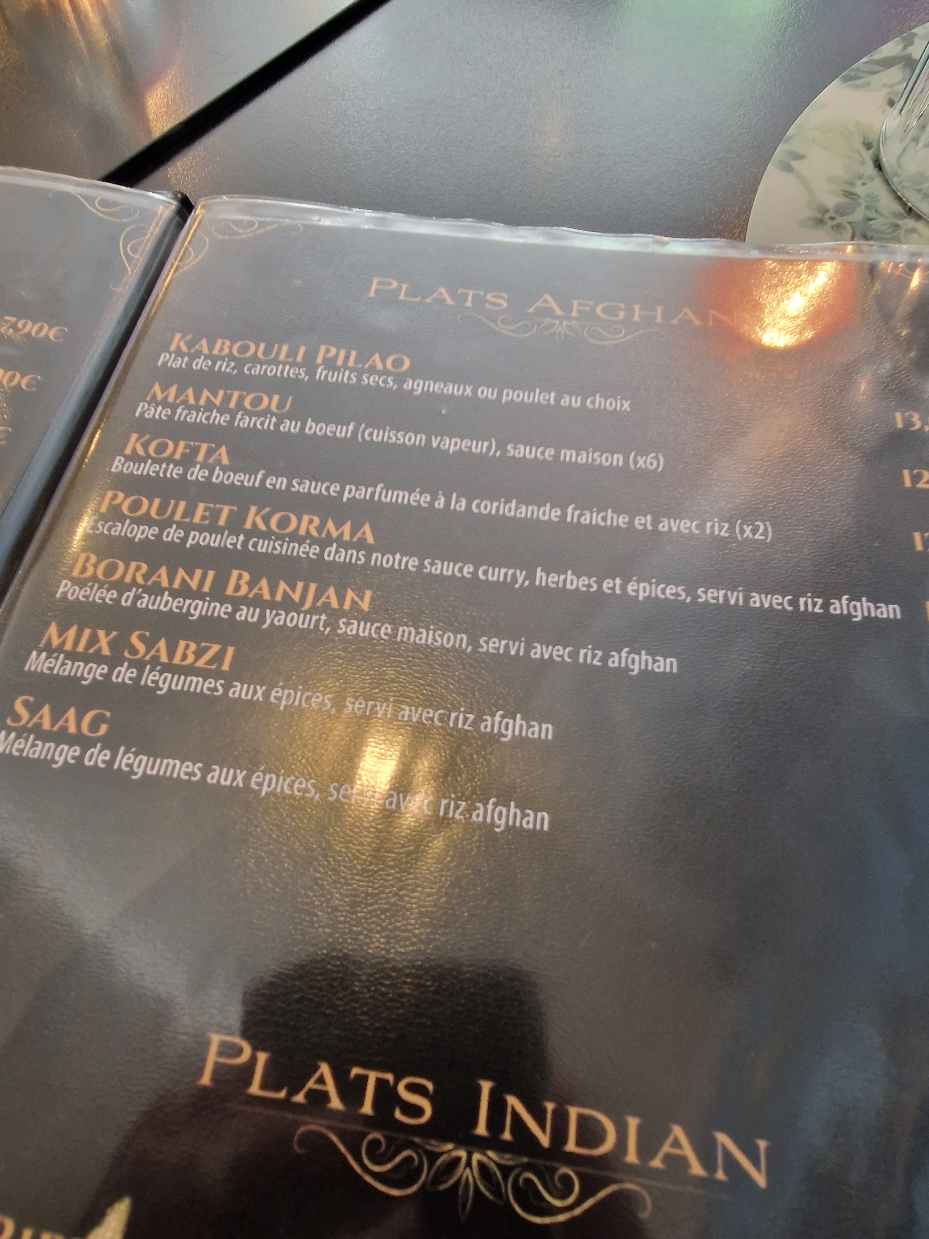 Très bon restaurant, le menu dégustation est très complet pour 2 personnes et pour découvrir la cuisine afghan