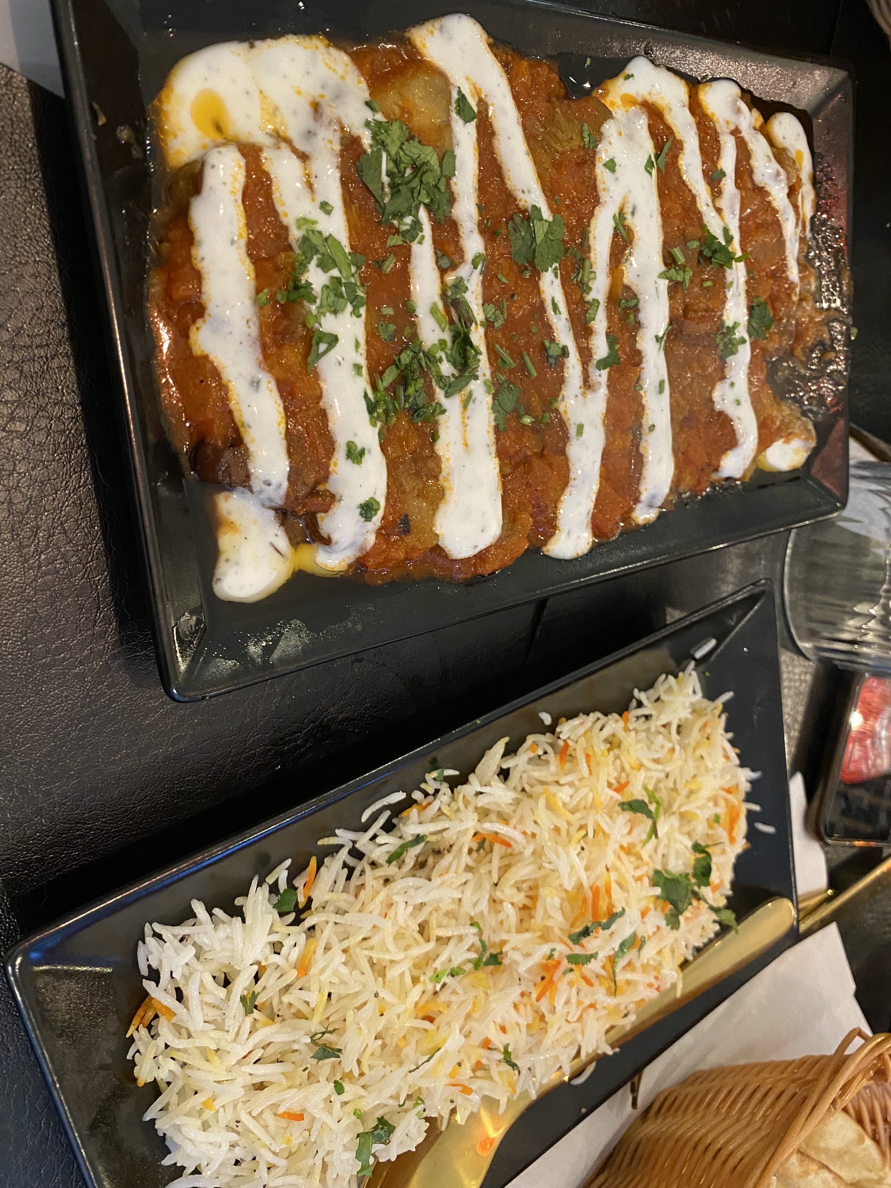 Nous avons pris deux Borani Banjan et deux nans aux fromages, c’était délicieux ! Merci !
