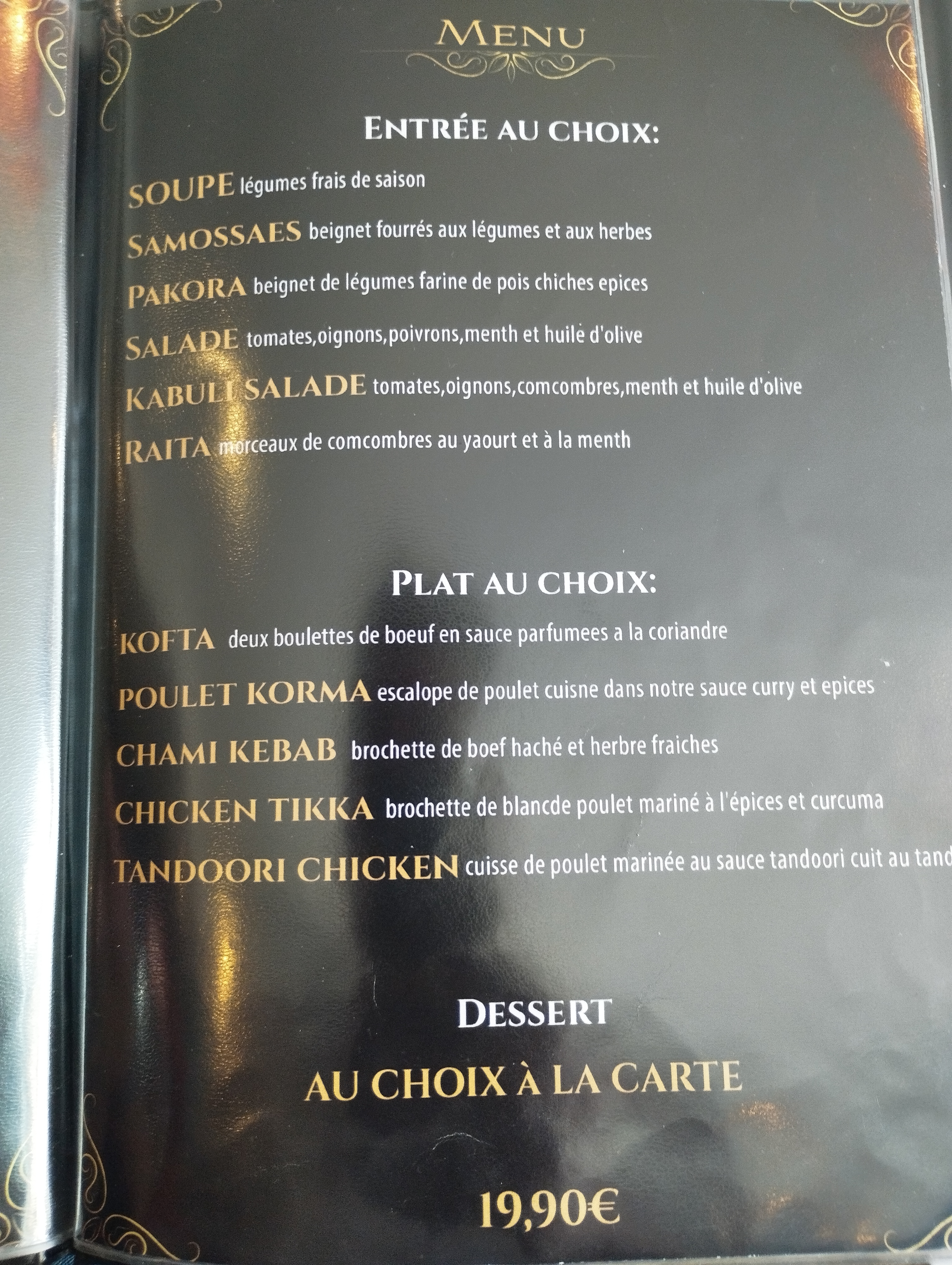 Menu pour 2 personnes 39.90. Excellente cuisine afghane