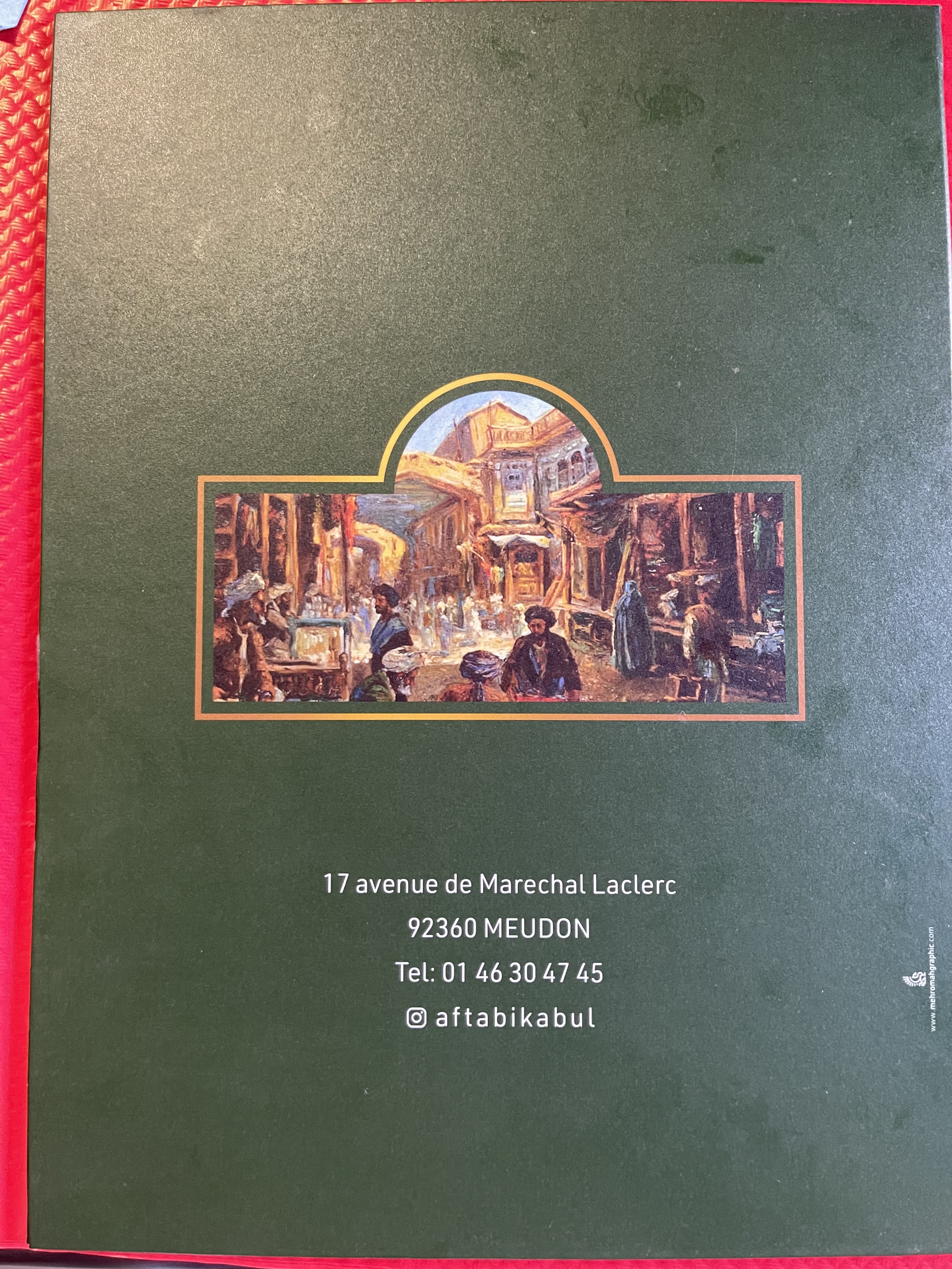 Voici toutes les informations sur le Restaurant afghan Aftabi Kabul qui ce trouve au Centre commercial du moulin, 17 Av. du Maréchal Leclerc, 92360 Meudon (92). Sur cette fiche vous trouverez les photos, l'adresse, les horaires d'ouverture, le numero de téléphone et les avis clients.Vous pouvez églement rédiger un avis si vous le souhaitez en bas de page.