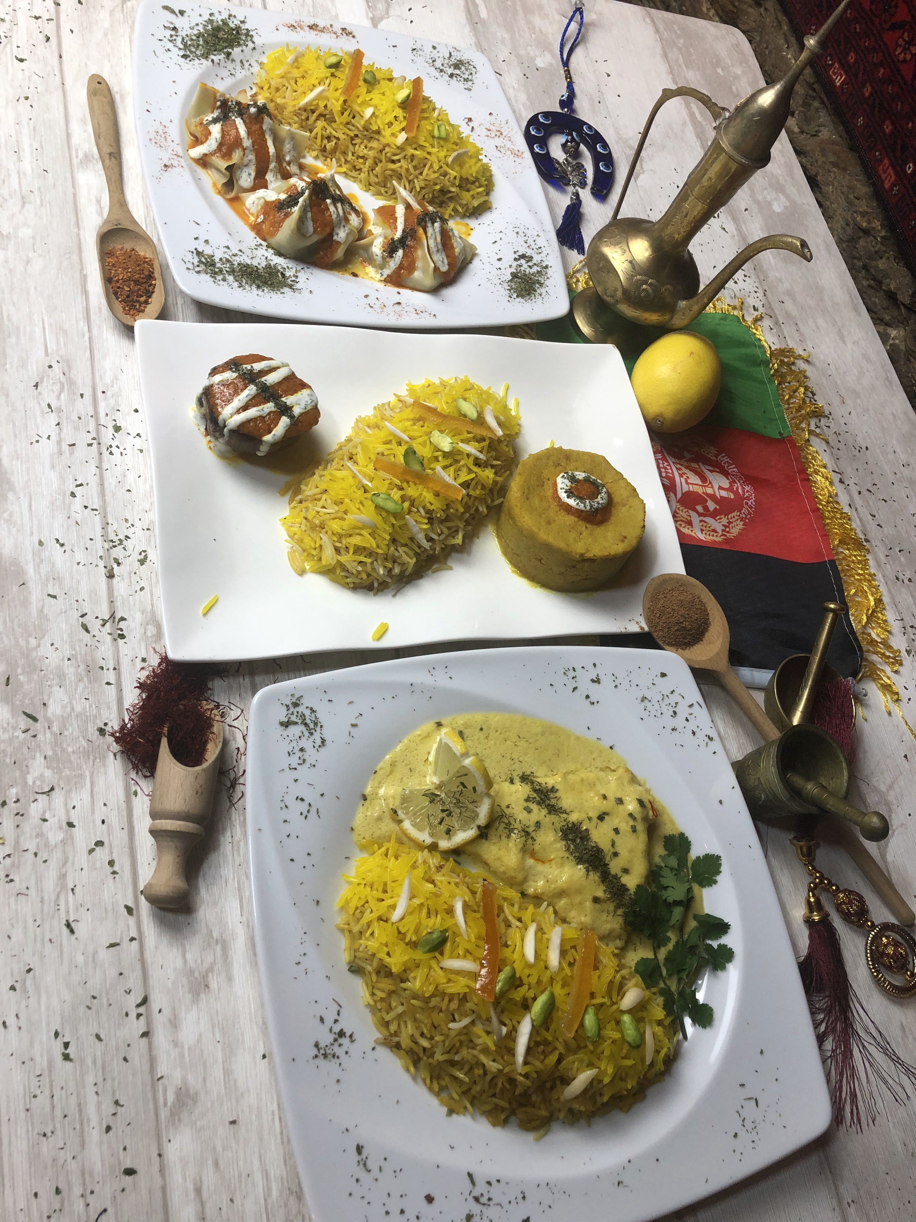 Les saveurs sont exquises.. Les plats sont généreux. Il y a de vrais spécialités afghanes.... La presentation des assiettes éveille les papilles.... L'accueil généreux Merci... Pour le bon moment.