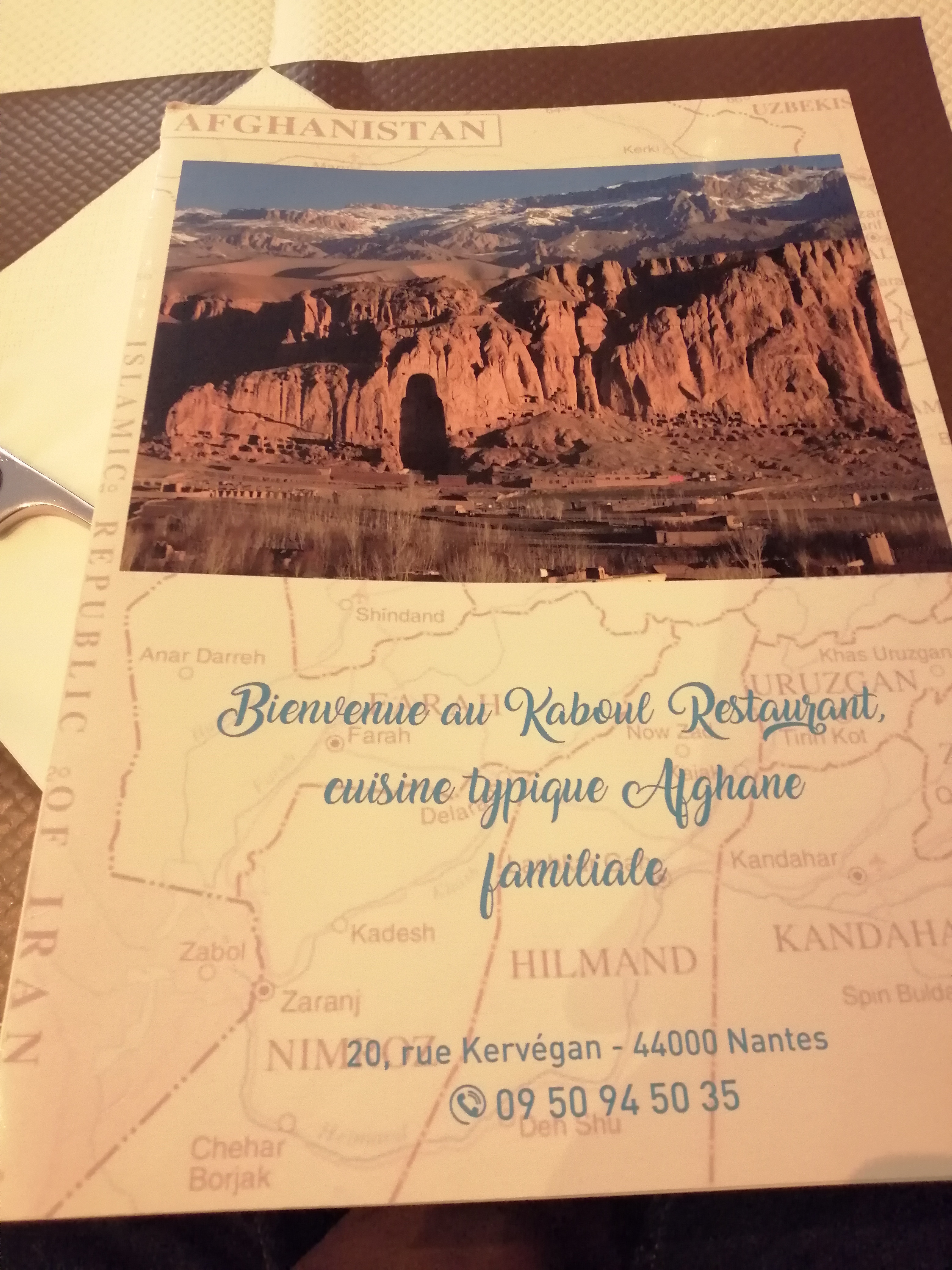 La gastronomie Afghane n'est pas forcément la plus connue et pourtant ce restaurant en plein centre de Nantes propose des plats succulents délicieux et savoureux. En effet, chaque bouchée est une invitation à l'évasion et une invitation à un voyage dans les montagnes afghanes. Les boissons, les entrées, les plats et même les desserts sont excellents. L'accueil est sobre et tout à fait correct. Le service est irréprochable. C'est véritablement une excellente adresse pour découvrir une cuisine peu commune.