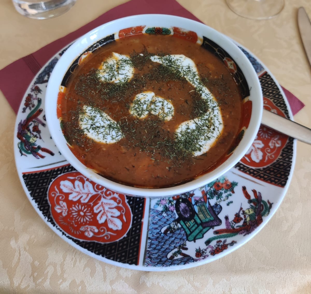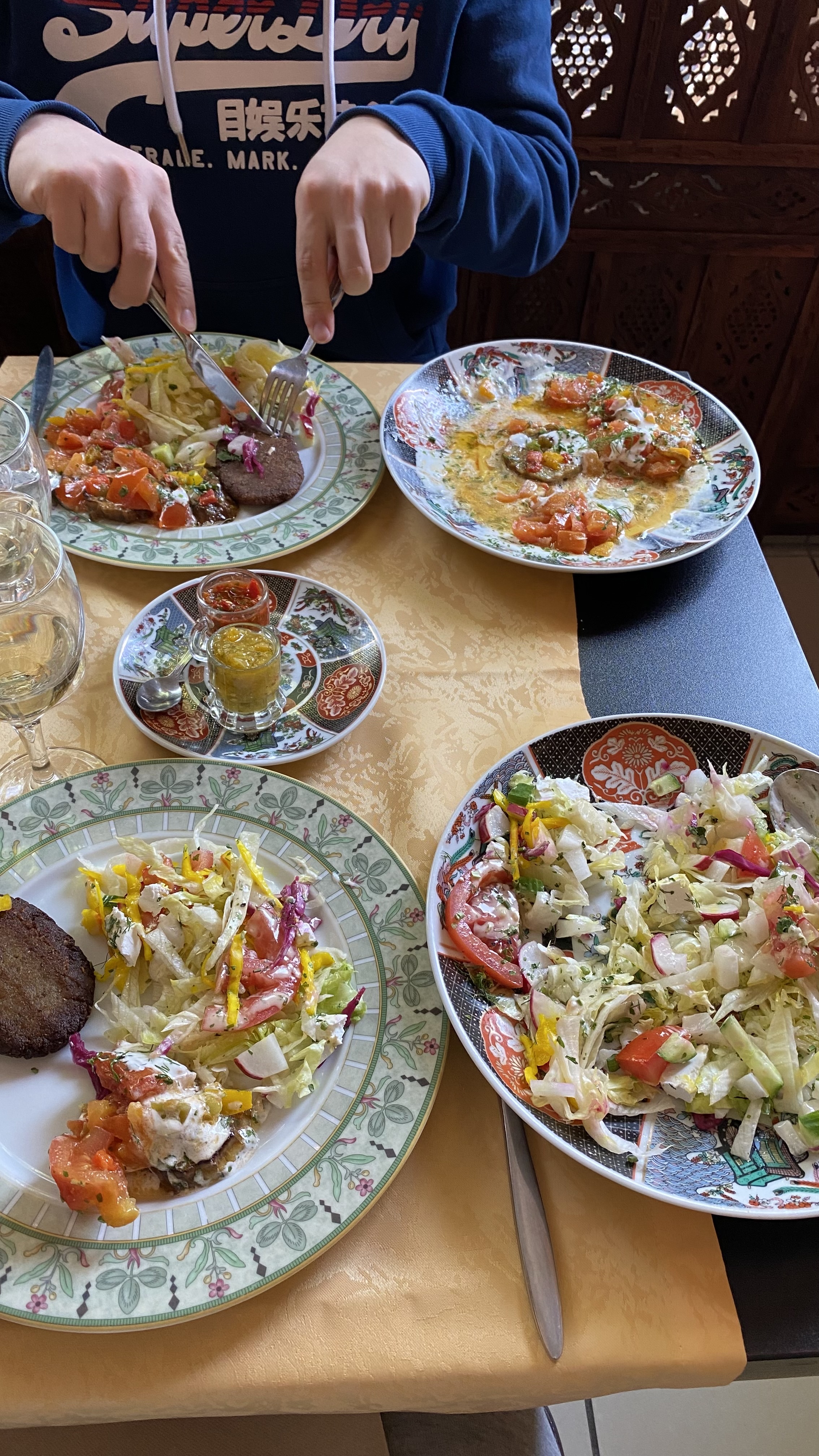 La cuisine est bonne mais pas non plus exceptionnelle. Beaucoup de crudités pour remplir l’assiette. Le kyr mûr n’est pas bon et les tarifs assez élevés pour ce qui est servi. Le thé est très bon.