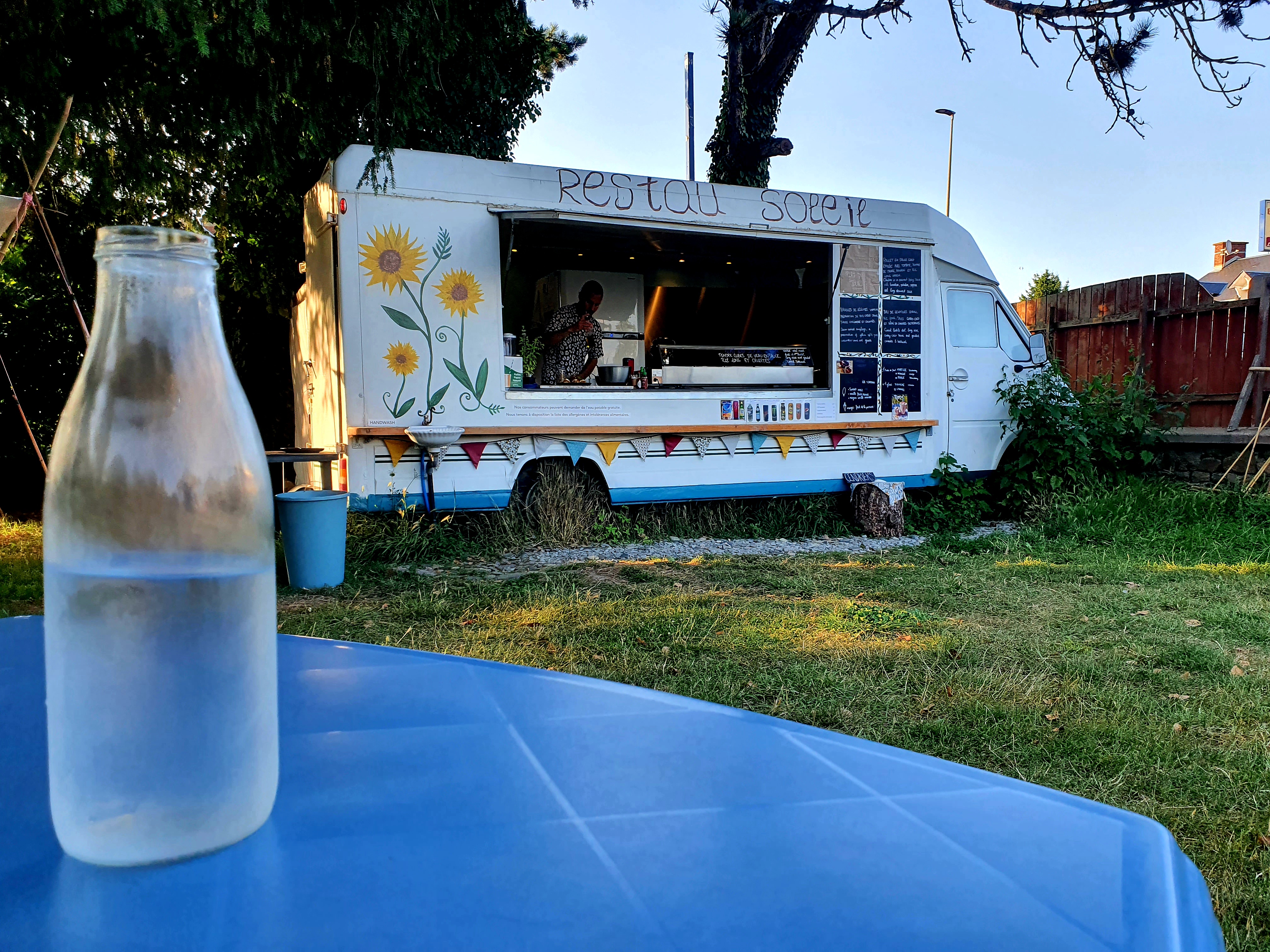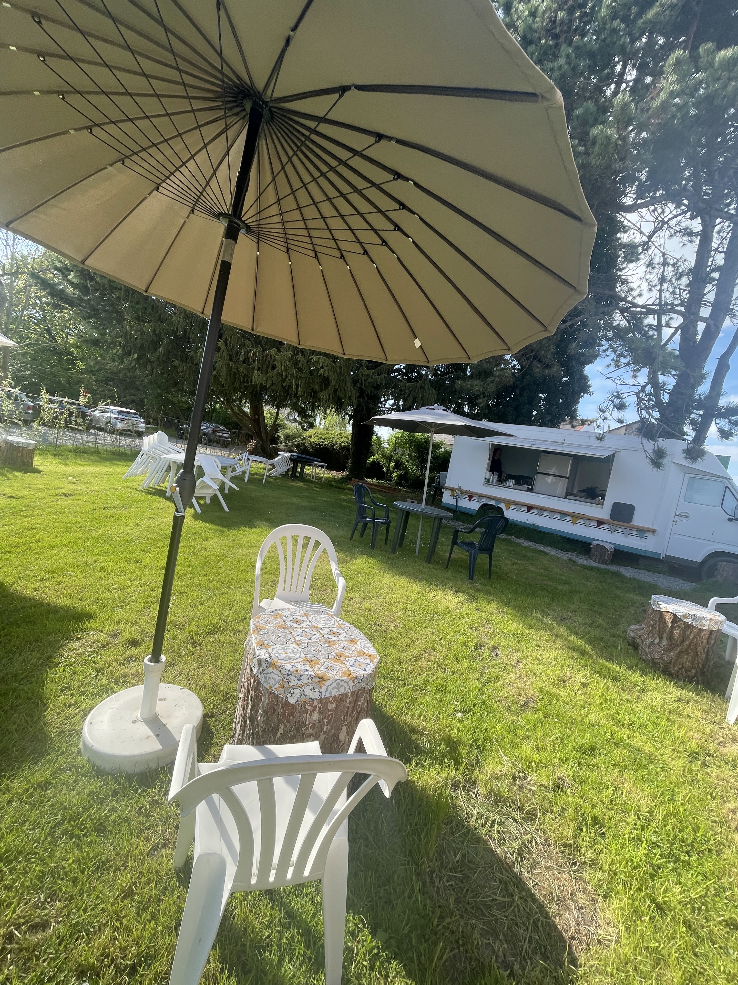 Super petit food truck où l'on peut déguster des plats (et des desserts) très bons et copieux Les table sous les arbres sont très agréables et les gérants sympathiques Je recommande vivement !