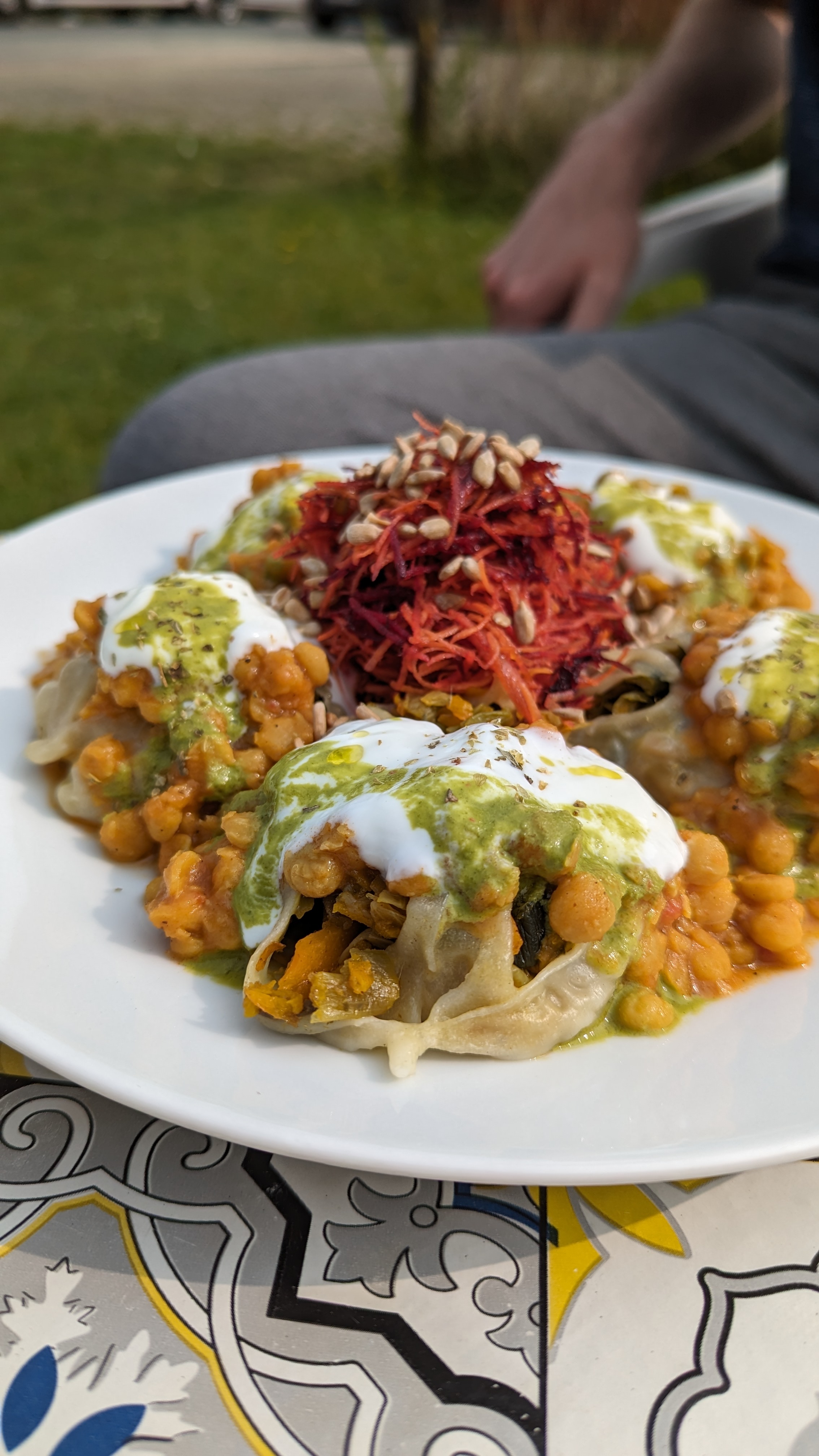 C'est un endroit tellement unique. Il est très difficile de trouver de la nourriture végétalienne, surtout si bonne. Et c'est définitivement une bouffée d'air frais ici - cuisine originale, type d'endroit original (cour confortable avec un van à l'intérieur) J'ai mangé des dumplings, et la portion était grosse, avec beaucoup de légumes, pâte tendre - je salive juste décrivant ce dîner)), il appartient à un couple très gentil et sympathique, ils étaient si gentils, j'aurais aimé les trouver plus tôt.