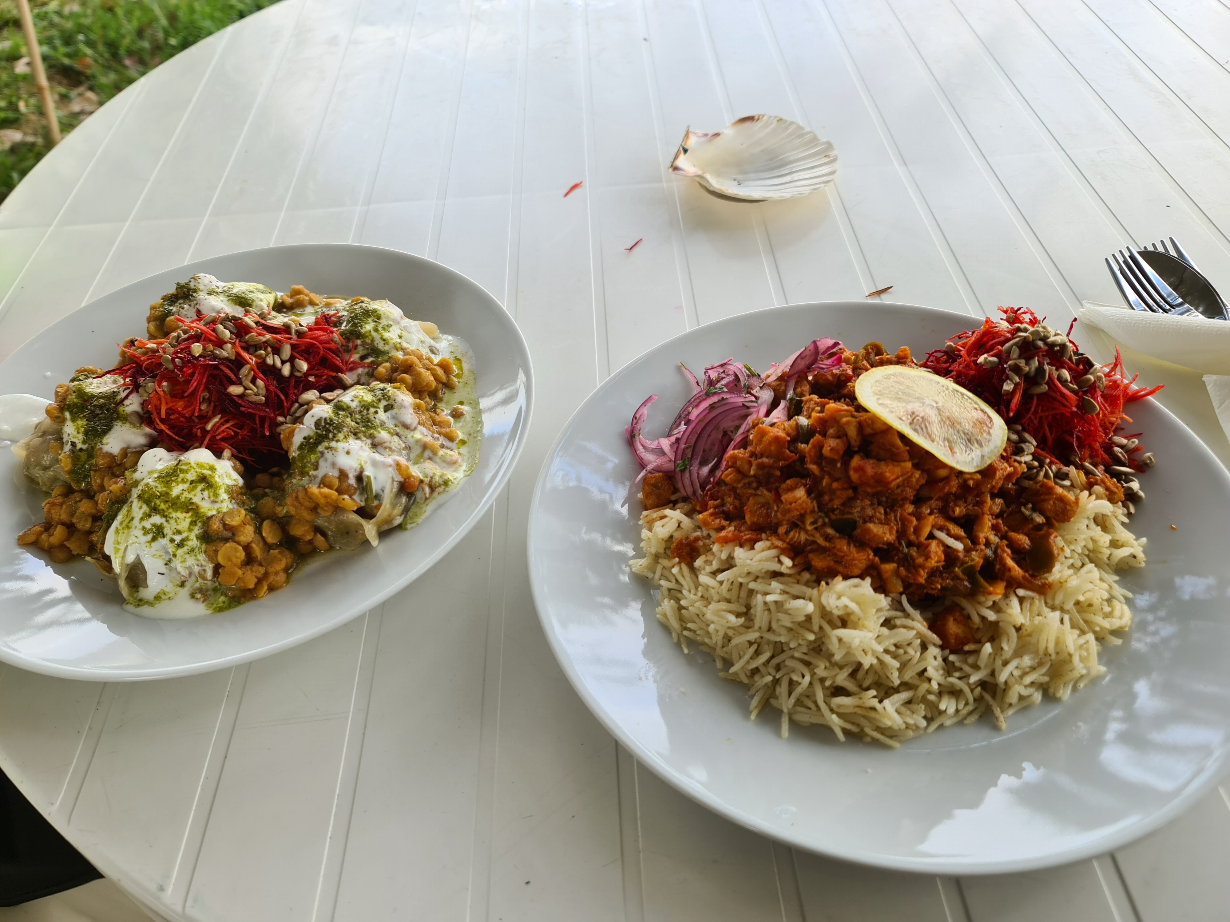 Nous nous sommes régalés avec le karaï de poulet et le dahl de lentilles, ainsi que le milk shake et le cookie à base de halva, un délice ! Le tout servi dans un jardin au calme. Nous avons passé un très agréable moment, merci :)