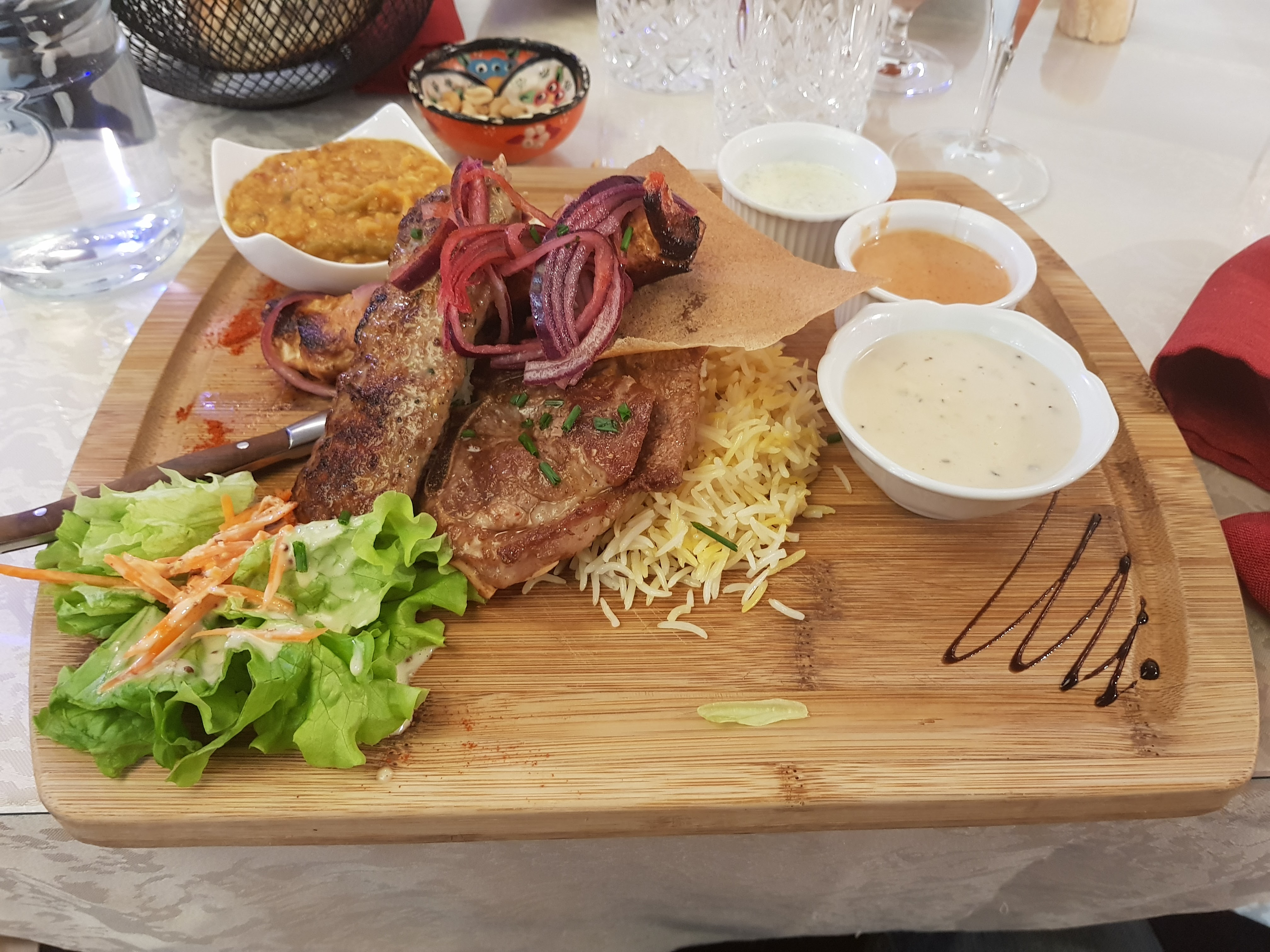 Quelques spécialités afghanes sympathiques mais pas exceptionnelles. Le service et l'accueil sont de qualité. Le gros bémol reste le tarif qui me paraît prohibitif. (20€ l'assiette afghane par exemple).