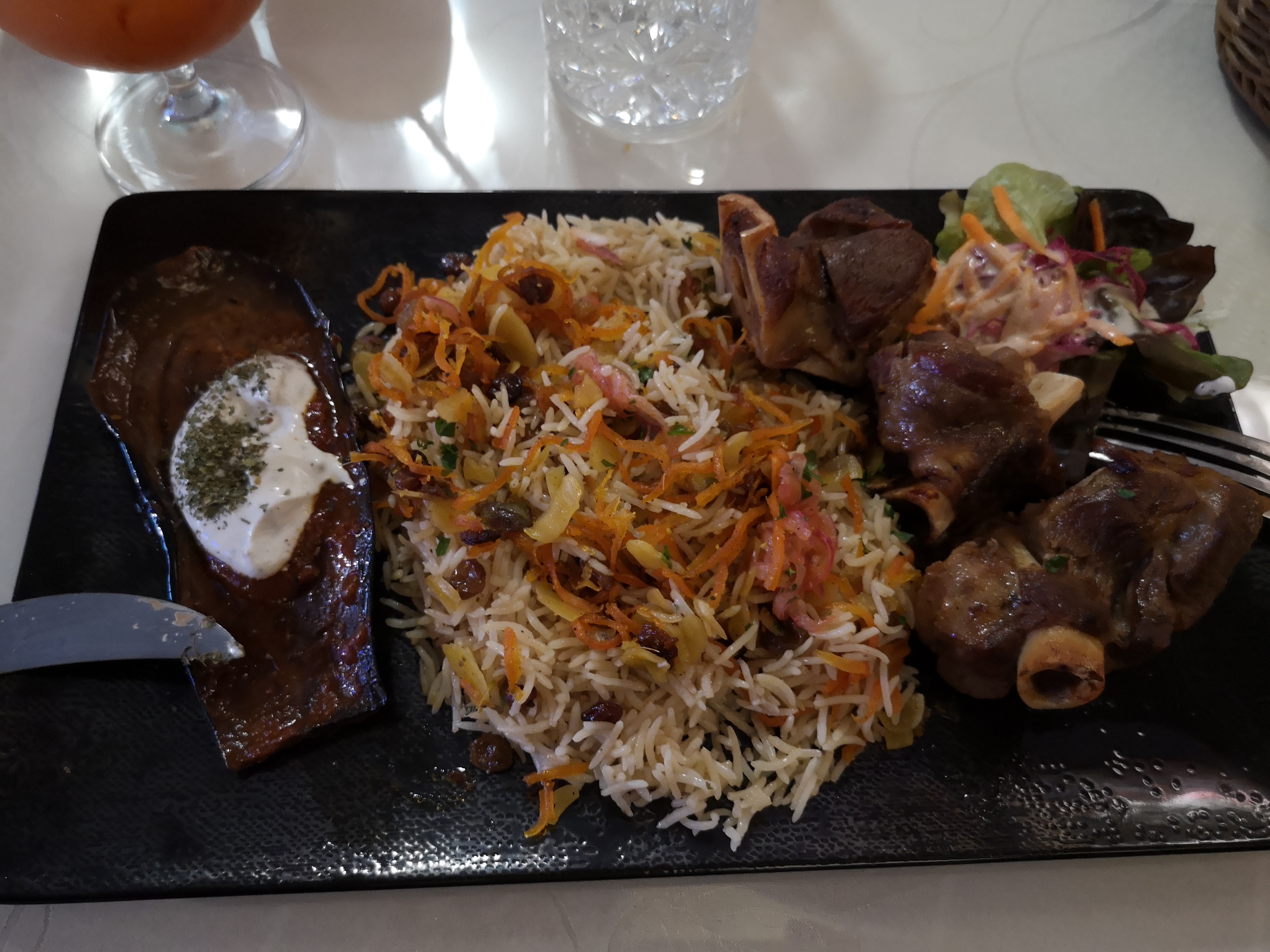 Le restaurant propose des plats originaux d'Afghanistan, mais aussi beaucoup de plats français très classiques. J'aurais aimé que tout soit un peu plus dépaysant... Les goûts sont justes, le prix est un peu élevé pour une prestation qui est bonne, mais qui ne restera pas inoubliable.