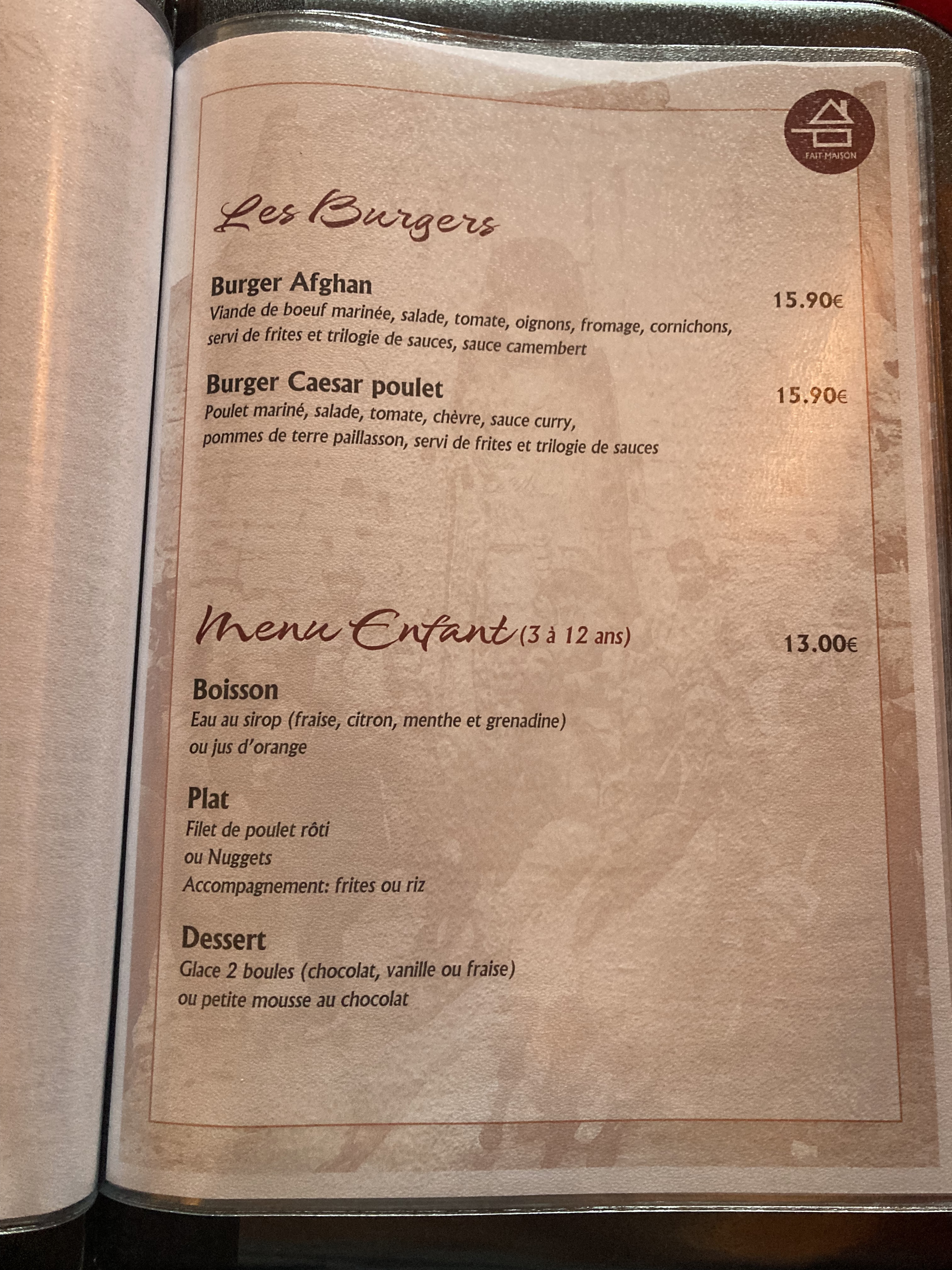 Très bon établissement, pas de menu, juste la carte mais que des produits frais. Service un peu long mais c'est la rançon du fait à la minute !