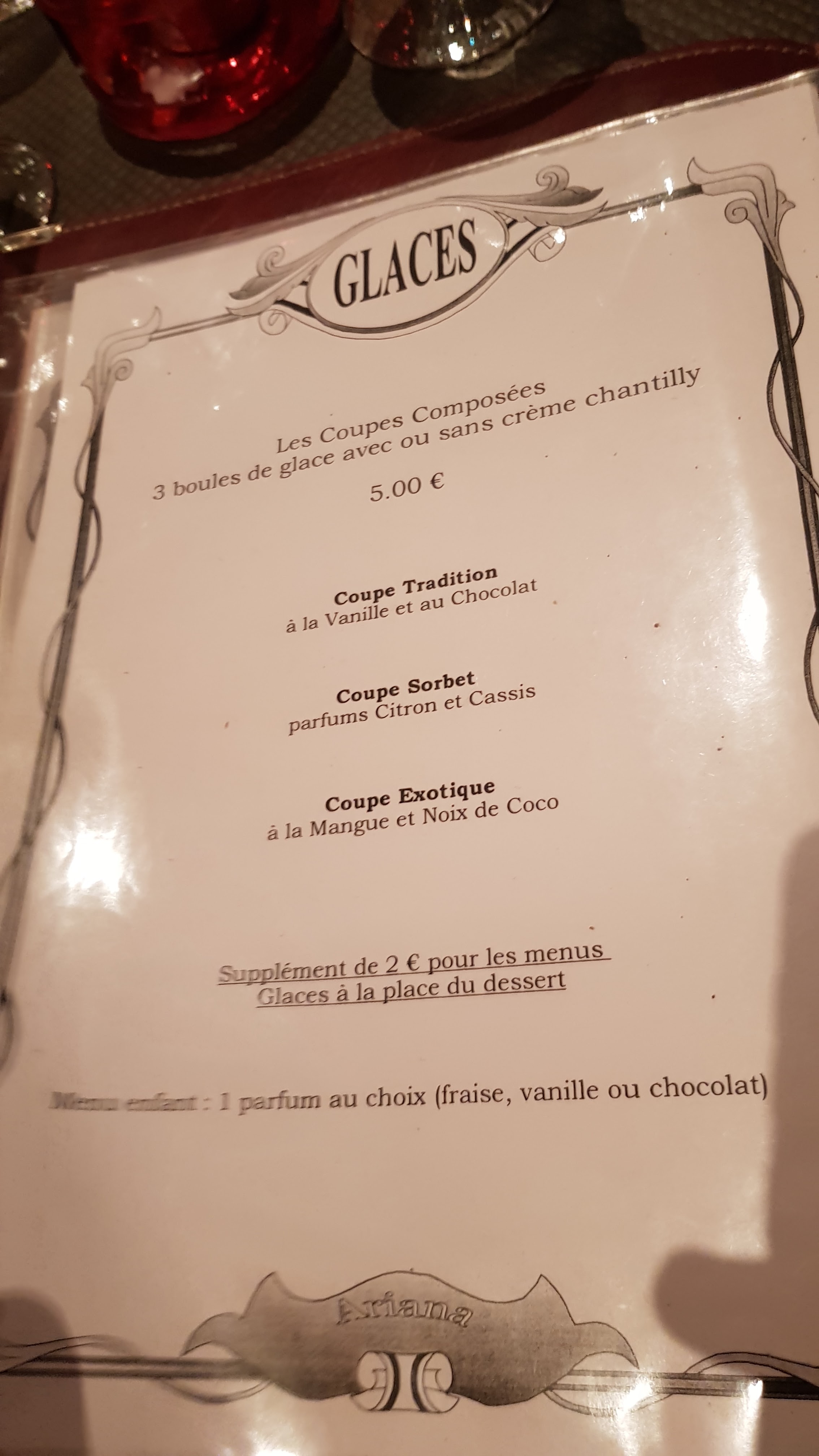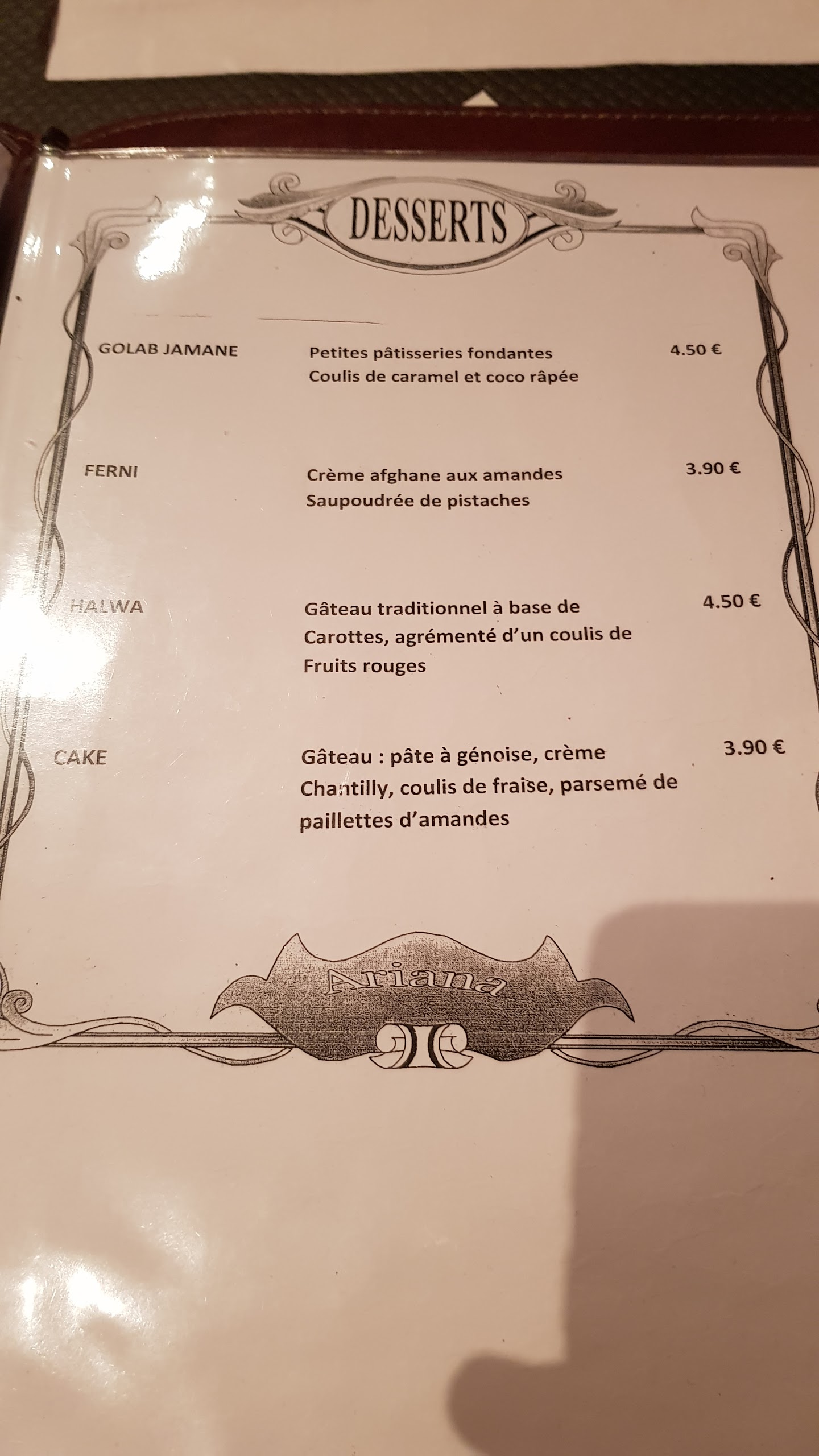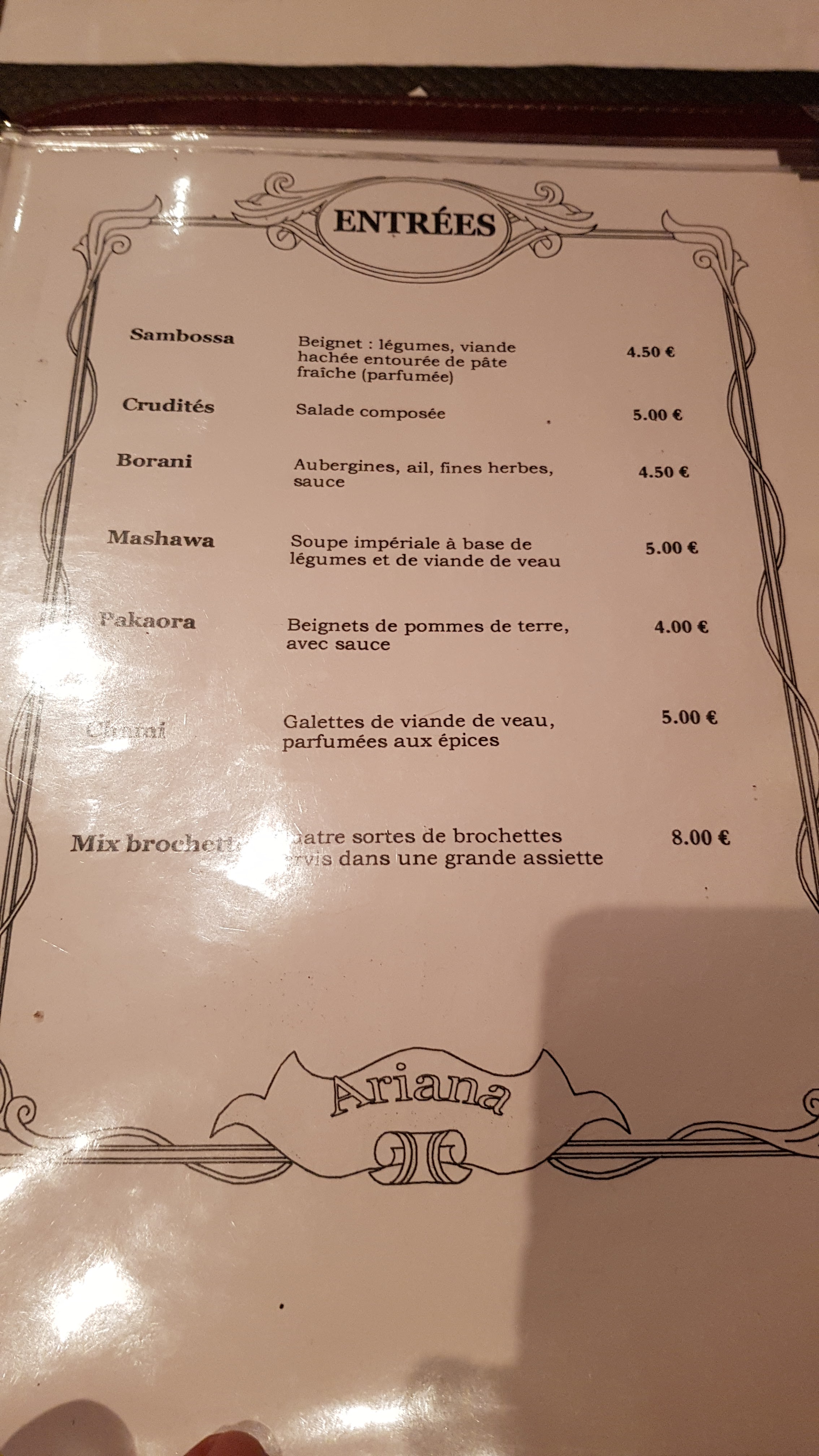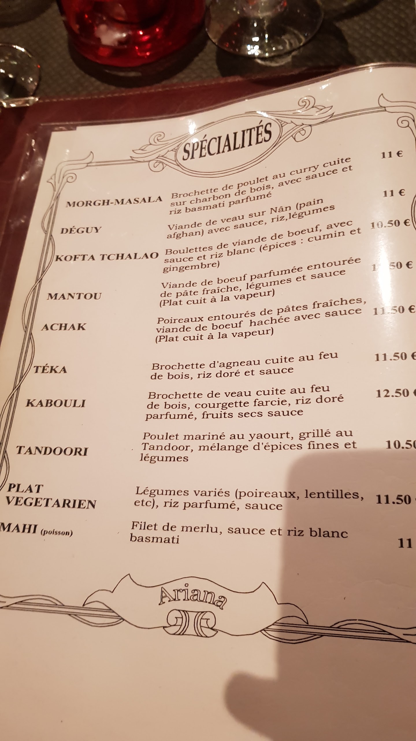Accepter tout seul une table de 11 personnes au pied levé, avec le sourire et offrir une telle qualité, moi je dis : chapeau ! Merci Monsieur, vous avez sauver notre soirée ! Je recommande l'Ariana, une valeur sûre. Ça fait plusieurs fois que nous y allons et nous sommes toujours aussi bien reçu. Encore un grand merci.