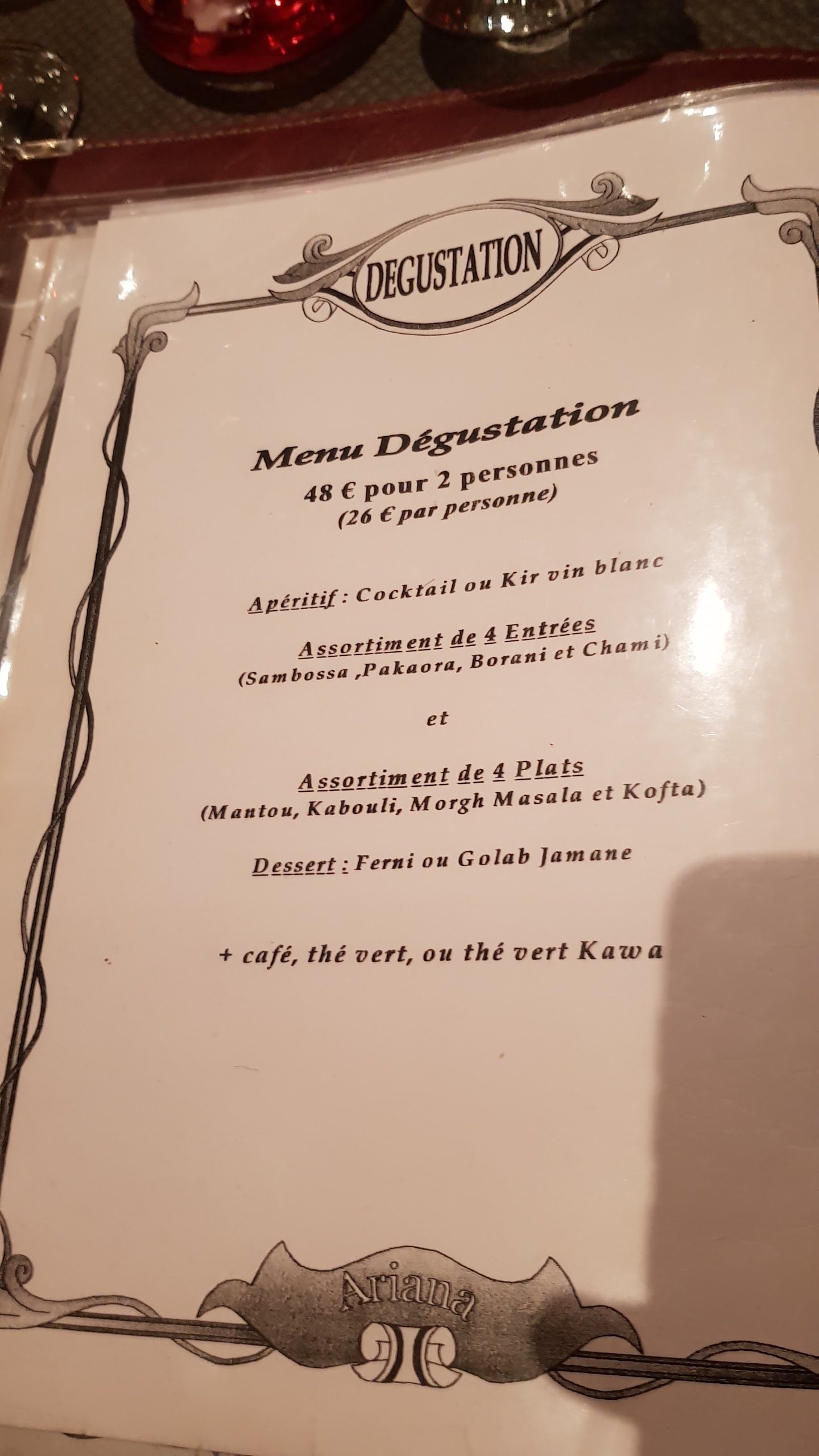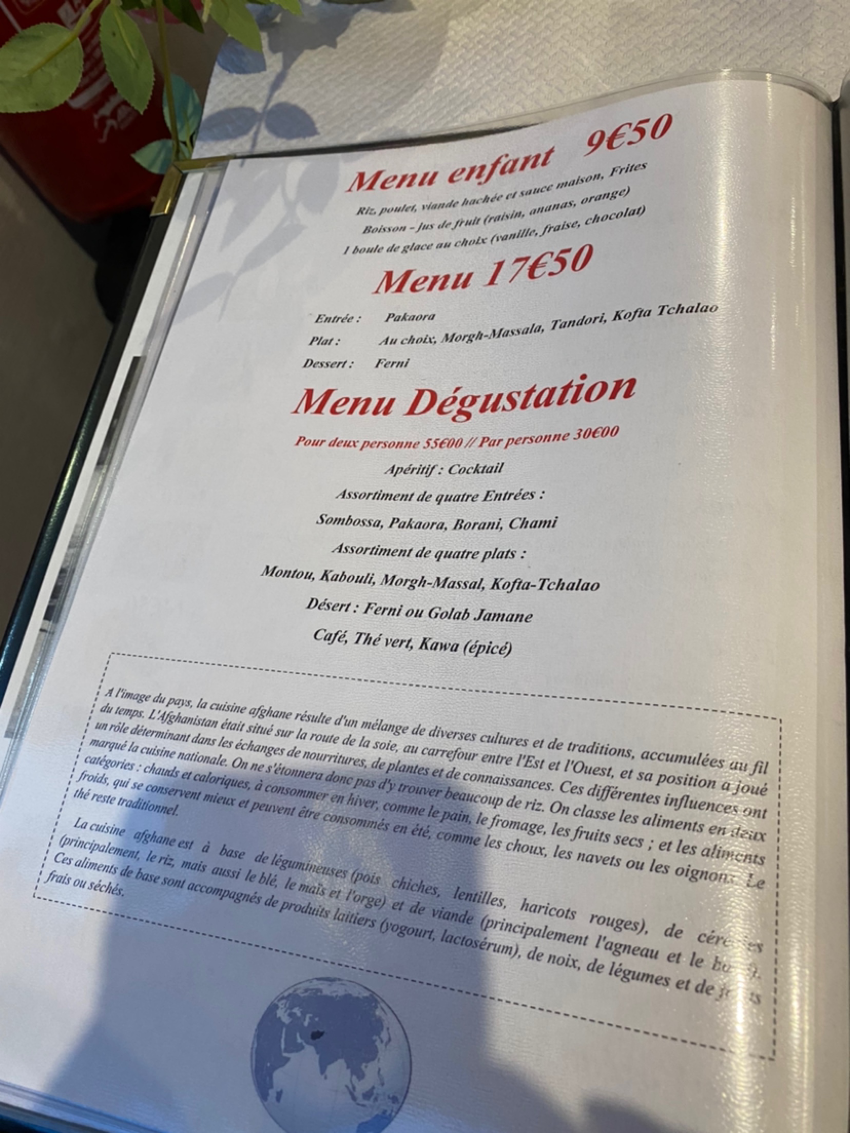 Menu dégustation parfait pour découvrir la cuisine afghane Tres bon accueil
