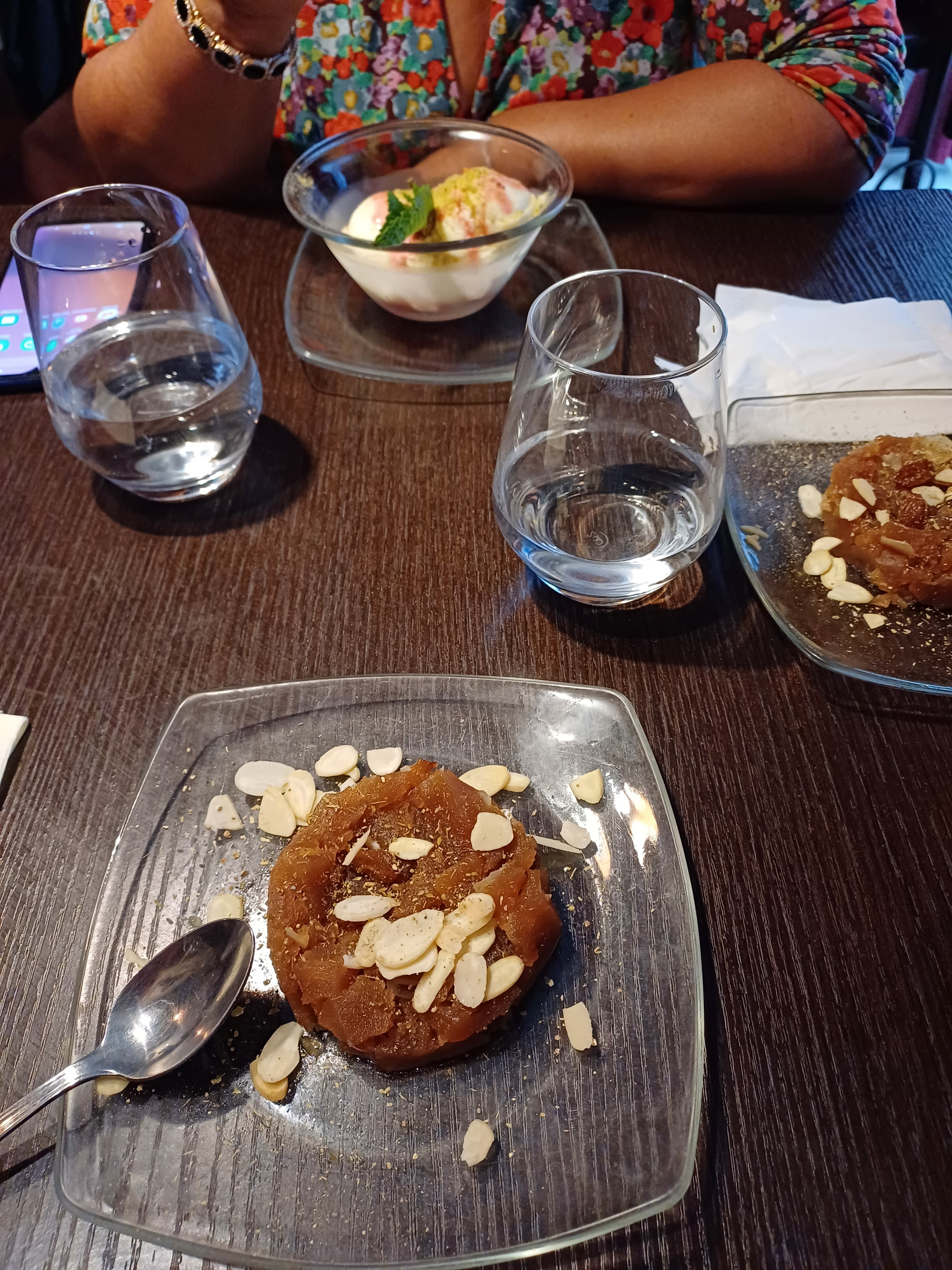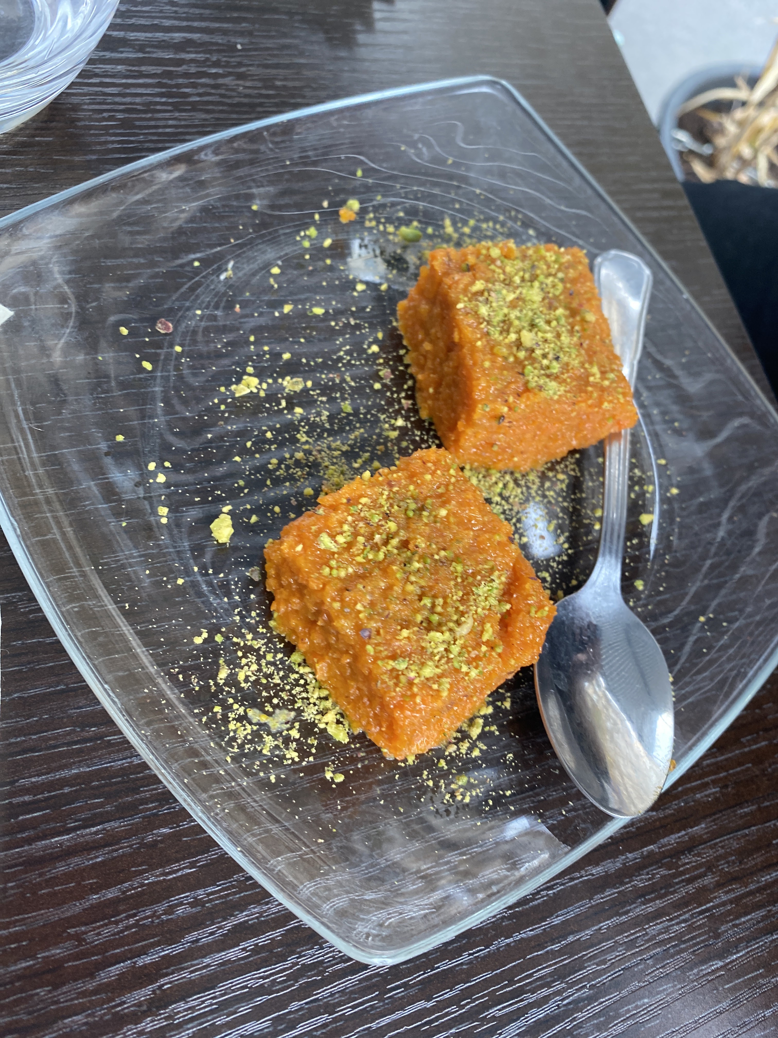 Nous avons pris entrée plat et dessert. Les Plats très savoureux. Nous avons adoré. Le gâteau à la carotte pistache et eau de rose est vraiment délicat et délicieux 😋