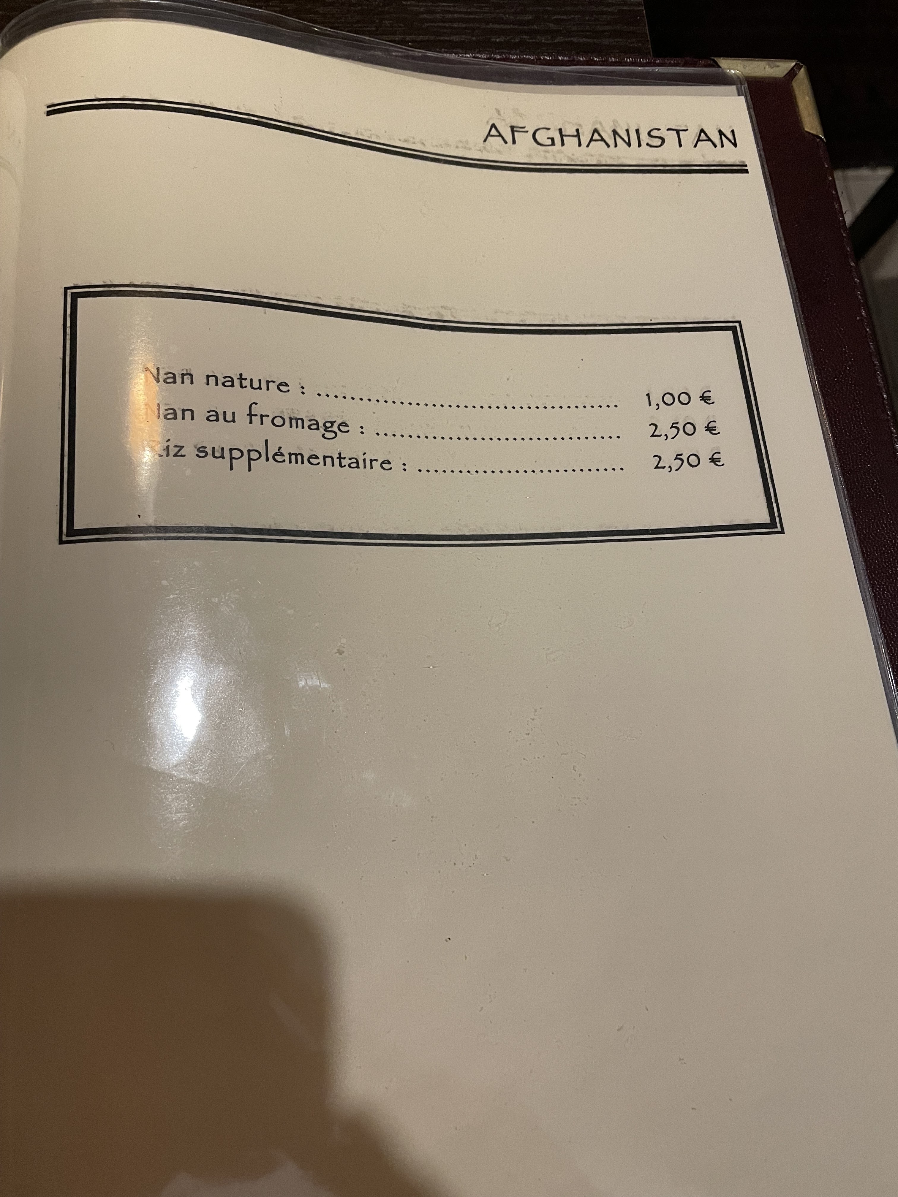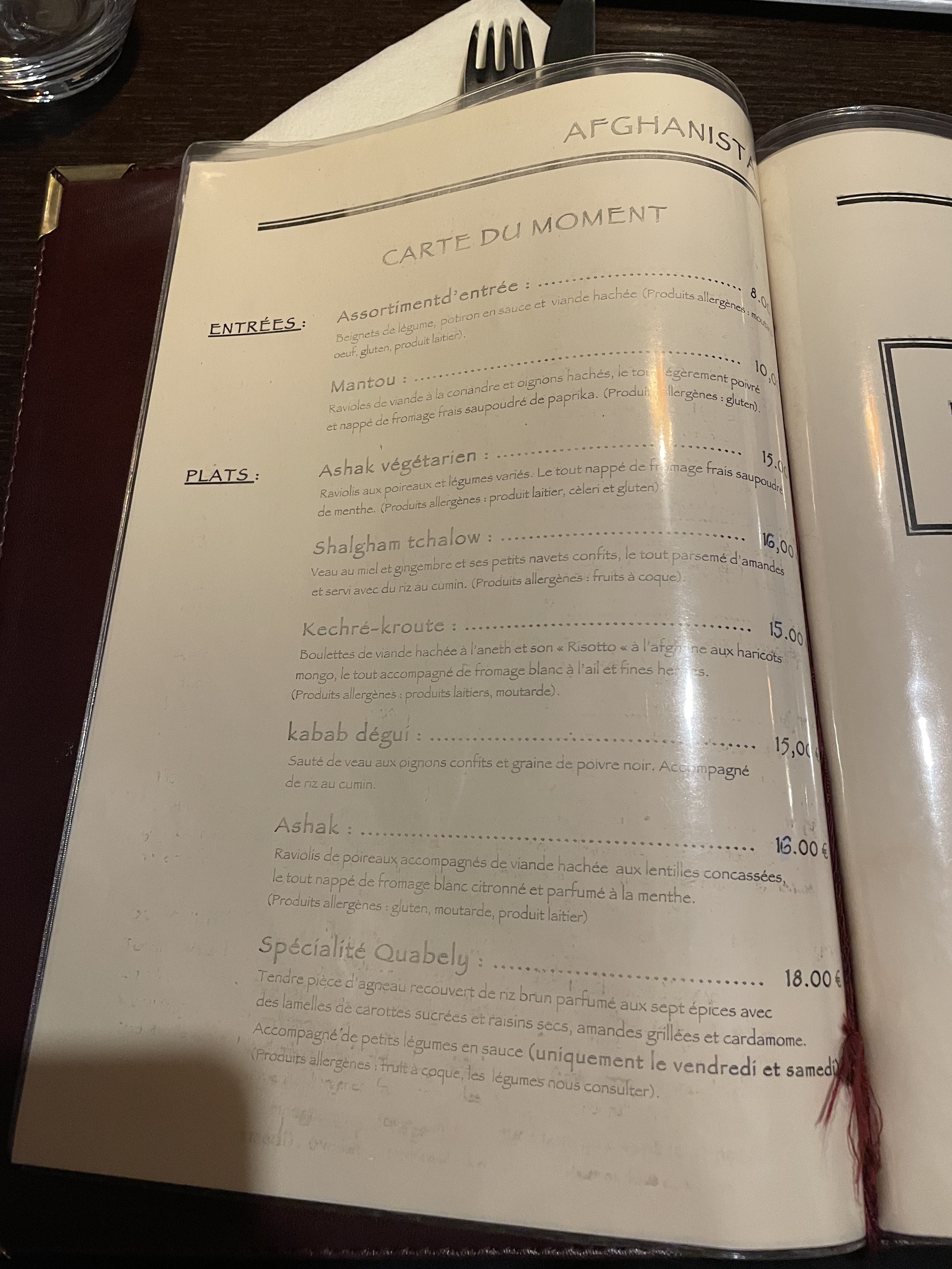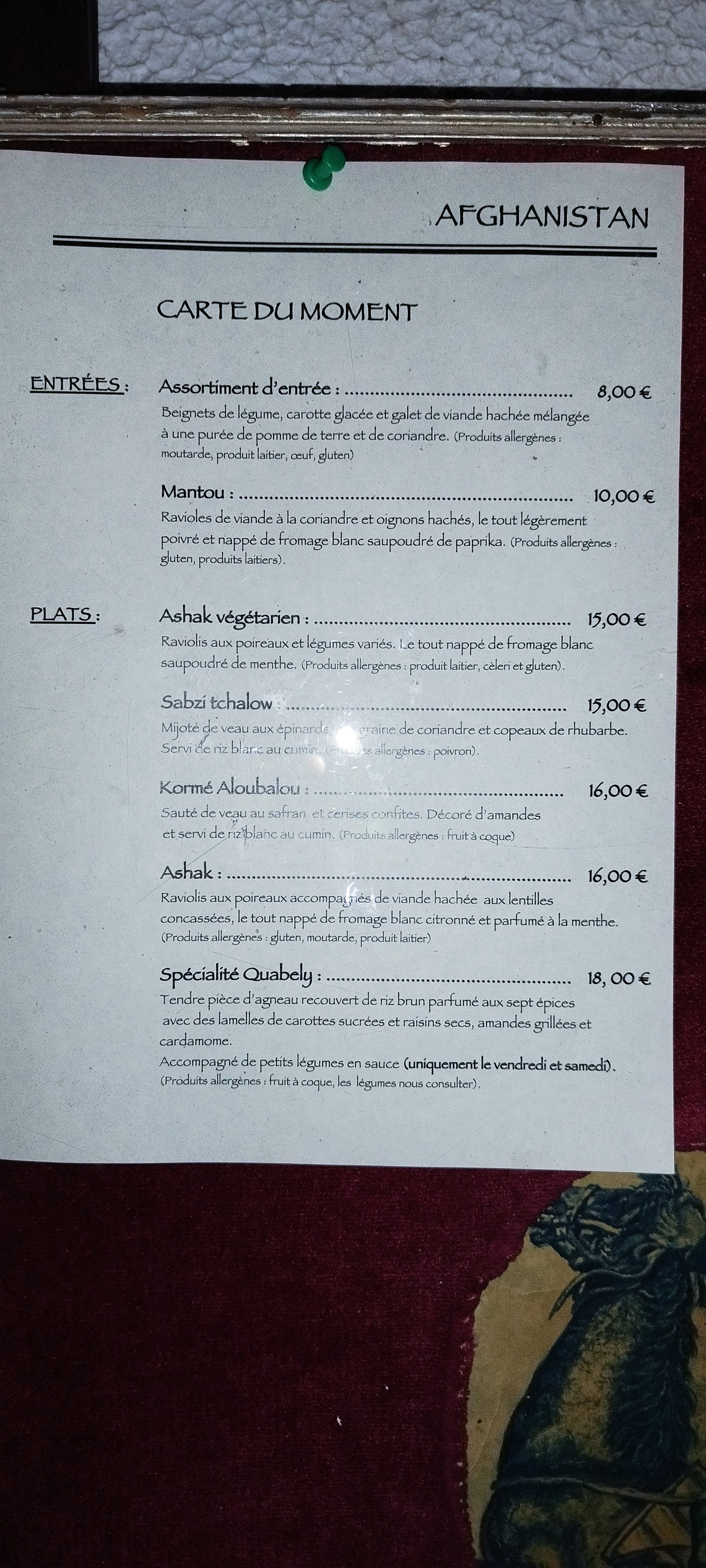 Cuisine familiale et carte variée, idéal pour se mettre sous délicieux ragoûts et sauces goutues. Votre banquier.e aura en plus le plaisir de voir que vous faites de généreuses donations à l'Afghanistan.