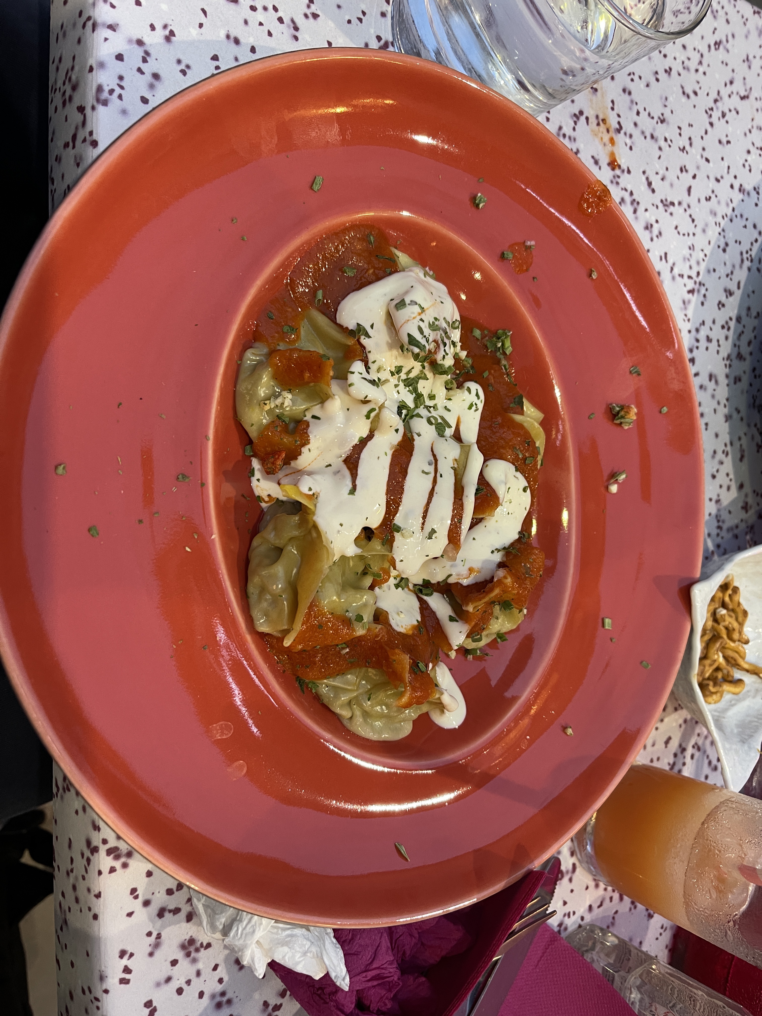 Les plats sont typiques d’Afghanistan, la sauce verte avec la coriandre et le vinaigre est à tomber par terre ! Les plats sont frais et copieux. On découvre des saveurs qu’on ne connaissait pas, faut dire qu’on n’entend pas parler malheureusement de l’Afghanistan pour sa cuisine… mais on passe à côté d’une gastronomie riche de part sa situation géographique (Carrefour entre l’Inde et l’Iran). bref adresse à conseiller et mention spéciale le patron est accueillant et a de bons conseils 🙌🙌
